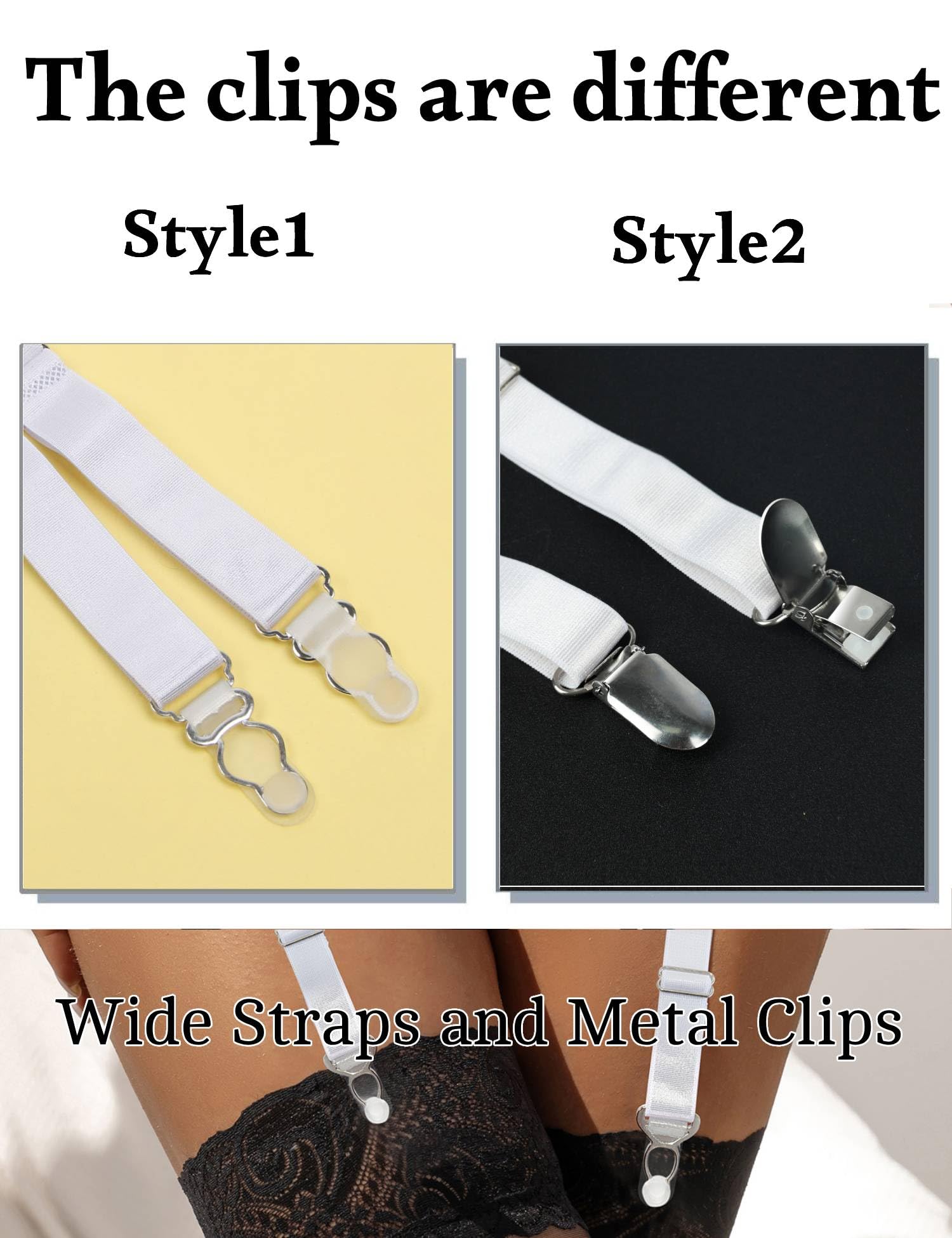 Adjustable Garter Belt Plus Size: Black lace garter belt is great tensile strength and elasticity. 4 widened adjustable straps with metal clips for thigh high stockings,Not easy to fall off(The difference with style 2 is the clip is different, other consistentοΌ