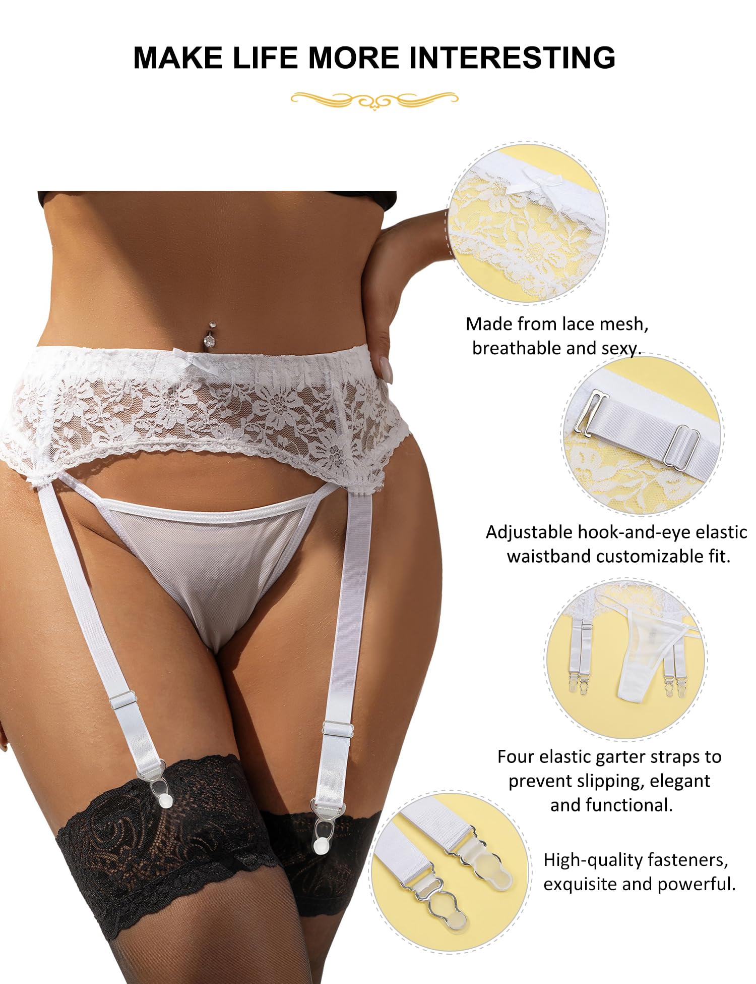 Plus Size Garter Belt Set Material: This low waist suspender belt is made of highly elastic skin friendly fabric, breathable and comfortable, suitable for all day wear