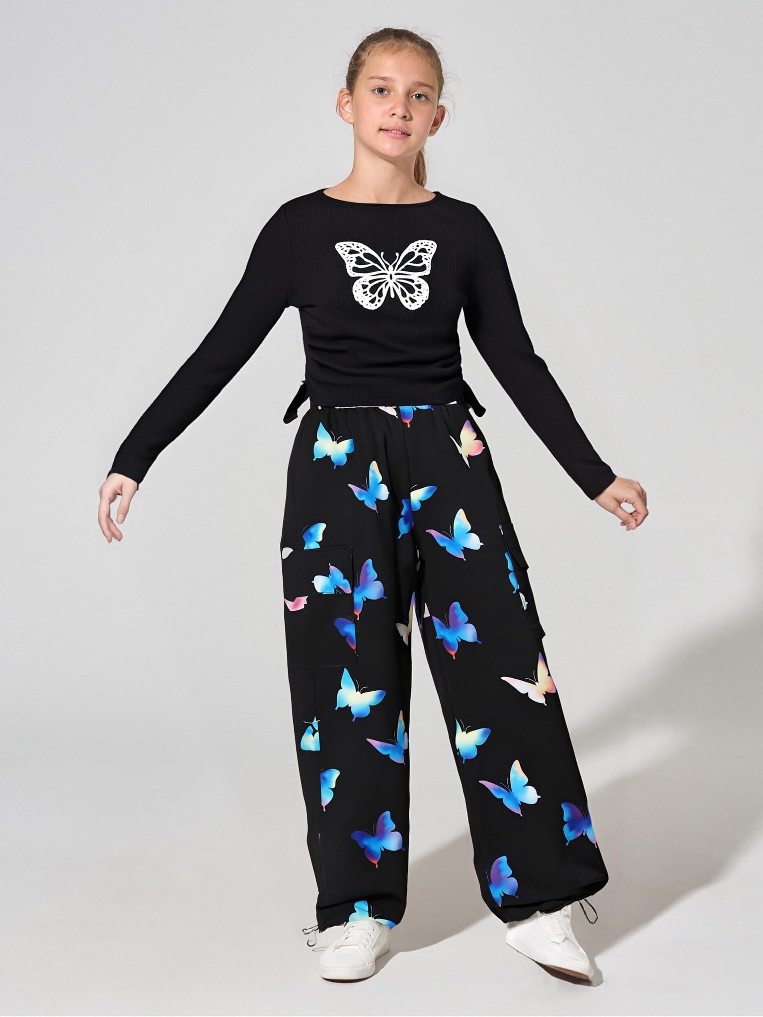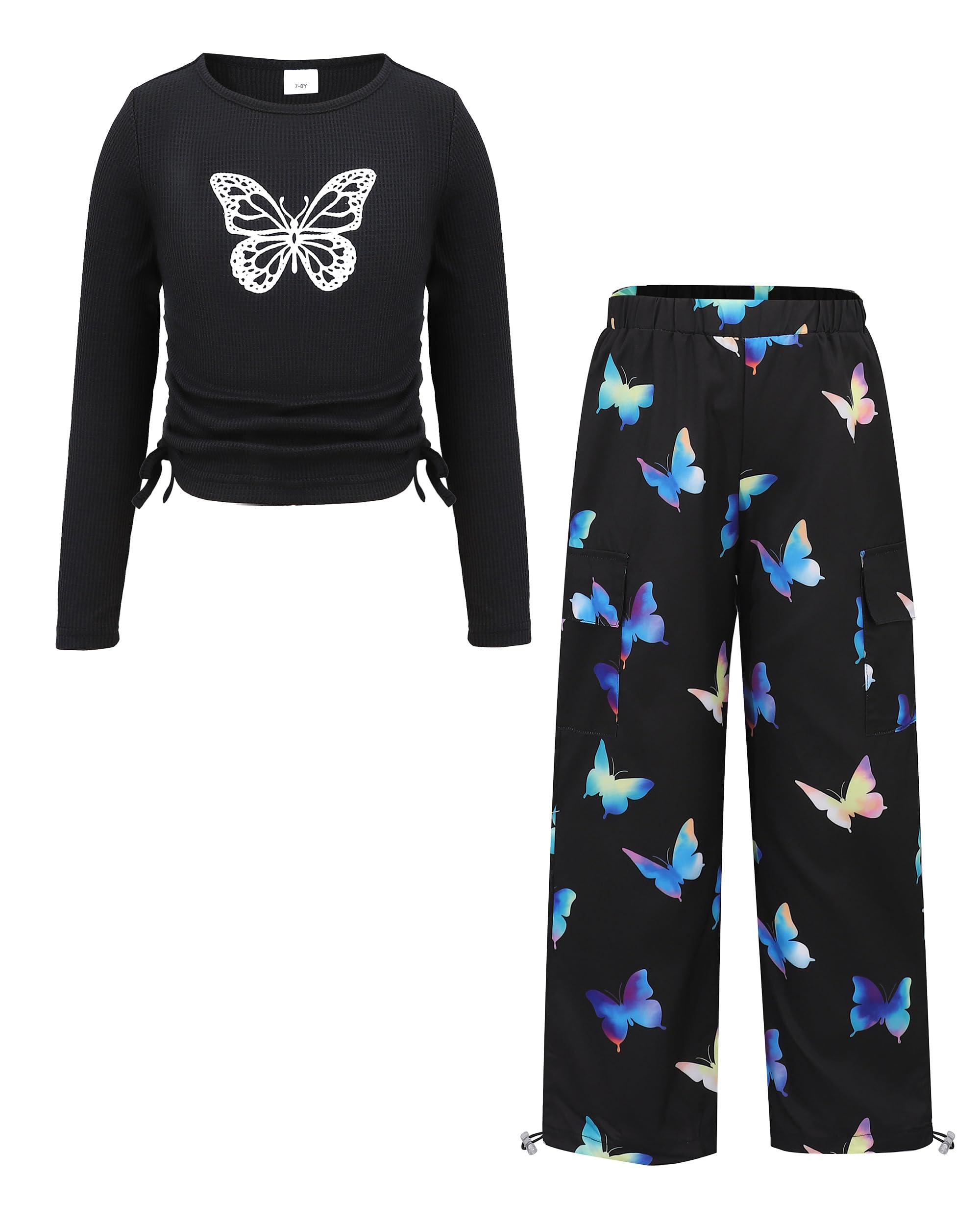 Design: The top features side bow drawstrings for a ruched look and adjustable length. The cargo pants have side pockets and adjustable cuffs for both wide-leg and jogger styles. The utility pockets can hold essentials like phones, earbuds, and cardsβcombining fashion and function. Multiple color and pattern options available, including camouflage, butterfly and star patterns.