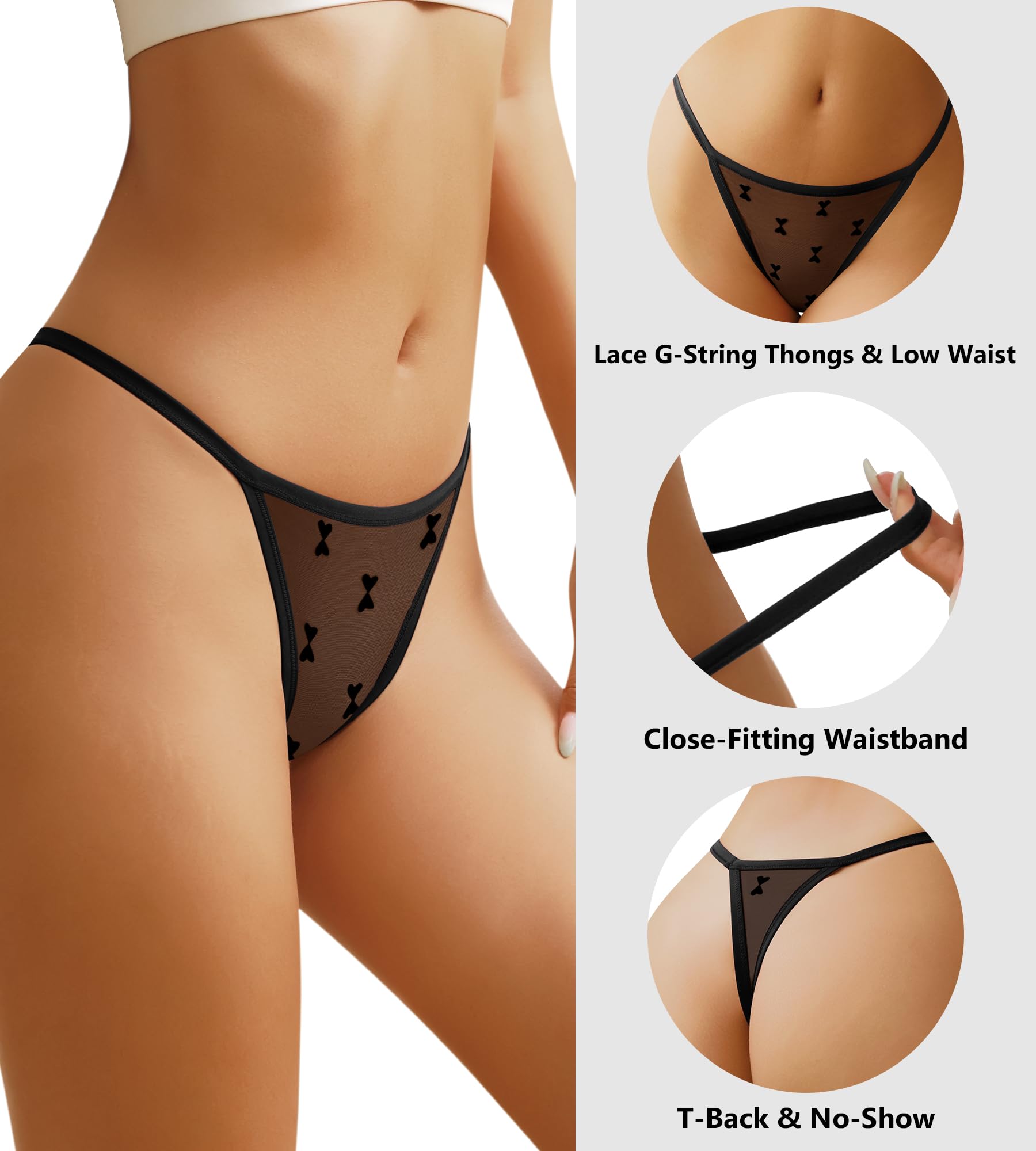 Seamless Thongs for Women:With women sexy g string panties clever seamless design, these women sexy thongs minimize the appearance of underwear lines when wearing outerwear,and the sheer lace designed to hug your bottoms,perfectly show your sexy curve.The well-designed waistband ensures moderate elasticity and a comfortable fit for every inch of the body