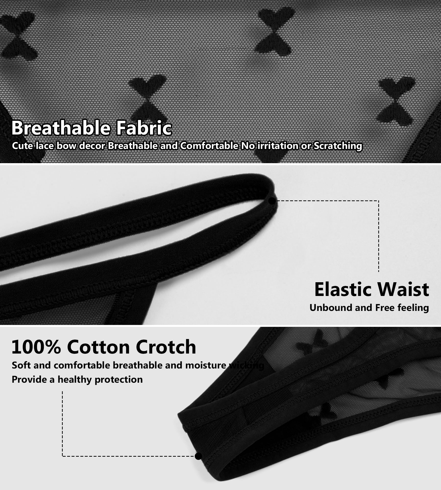 Lace Thongs for Women:The playful and feminine lace thongs for women that not only prioritize comfort but also celebrate individuality,making each knicker a unique expression of personal style. Women hipster panties with cute lace bow decor give you a charming and flattering look