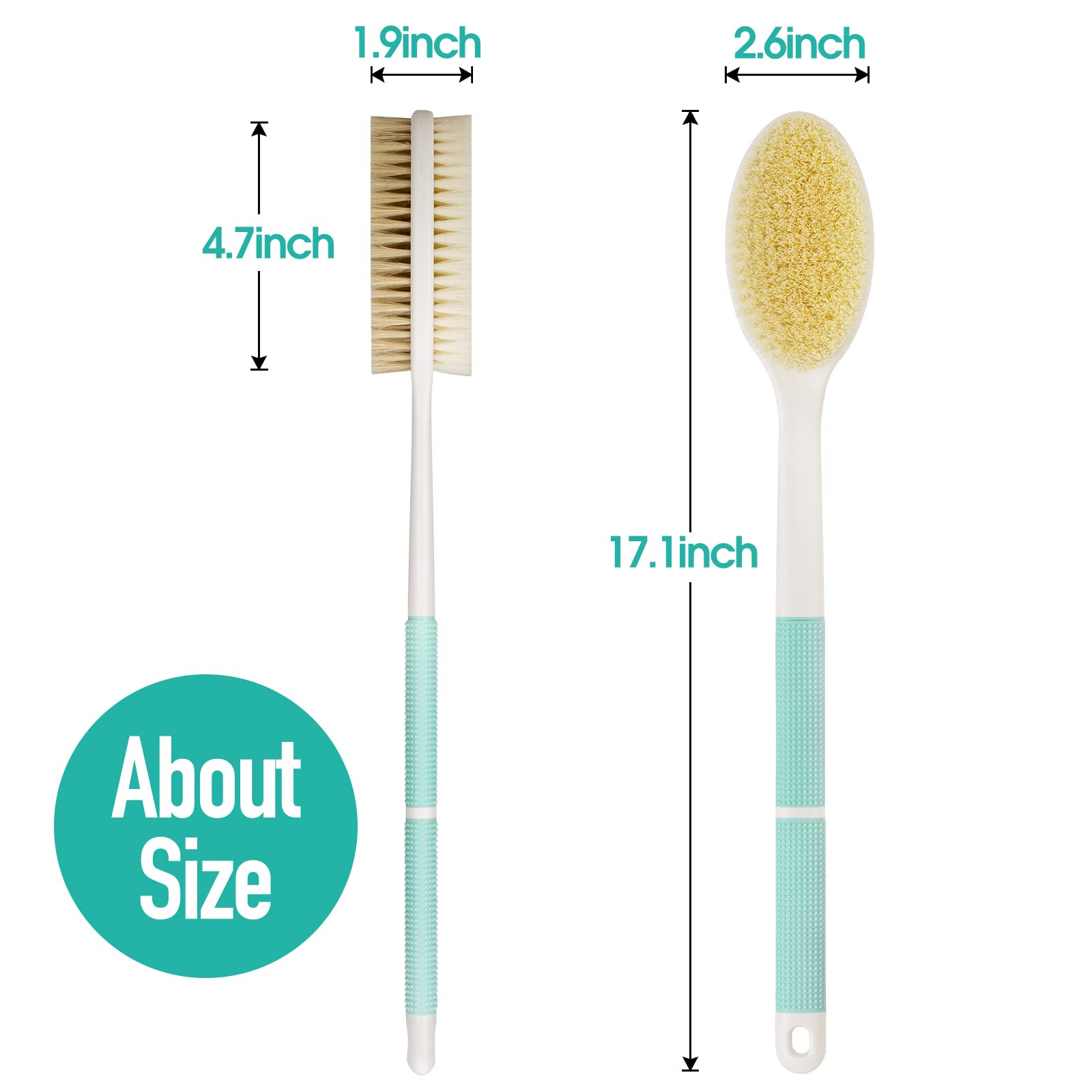 【Long handle, Cover More】Long handle allows you to cover hard-to-reach spots such as back,lower leg and feet,no need to bend to wash these areas anymore.Overall length is 17.1 inches,“Lifesaver” for bath and shower.
