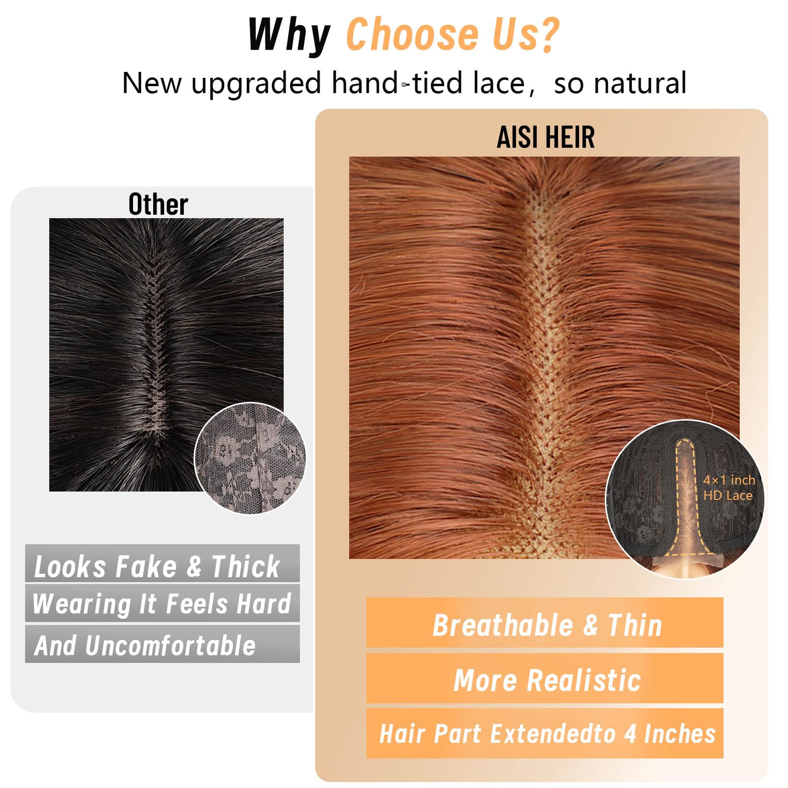 Brand: AISI HAIR Product Color: Ginger Length: 26 Inch Lace area: Lace Hairline Texture: Wavy Cap size: 22 Inch, and there one adjustment belts design, so it’s suitable for many kinds of head circumference, about 20-23 Inch head size can be suitable. About color: Ginger. Different light and different monitors, will make the hair color have slightly different from pictures. Applicable occasions:It can be used in daily life, parties,school, travel,family gatherings, etc. Customer service: If you have any questions, you can contact us at any time, we are online 24 hours a day.