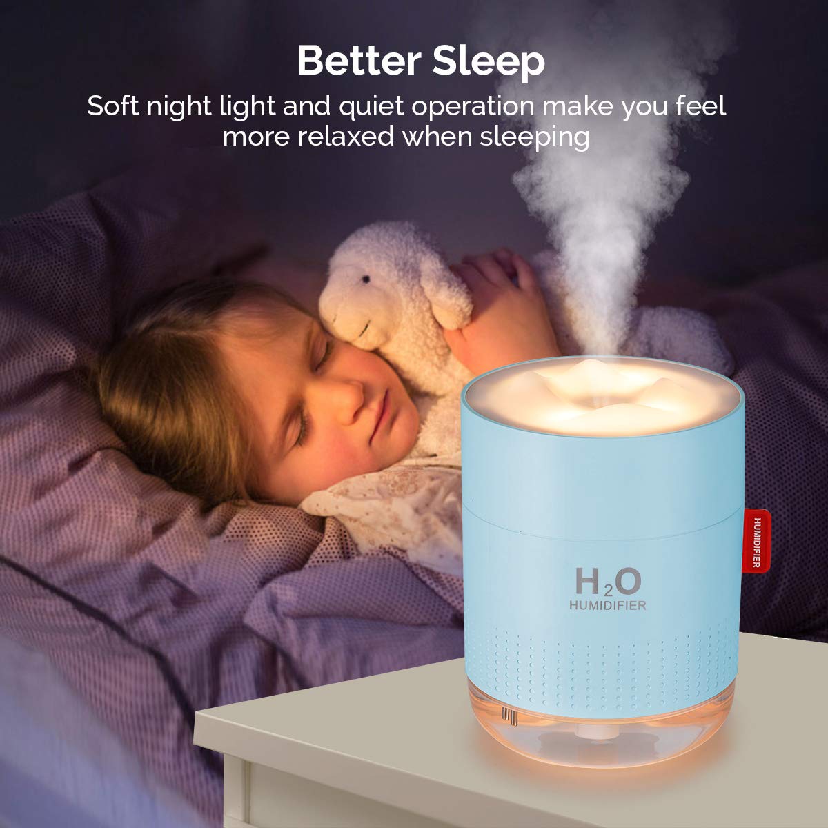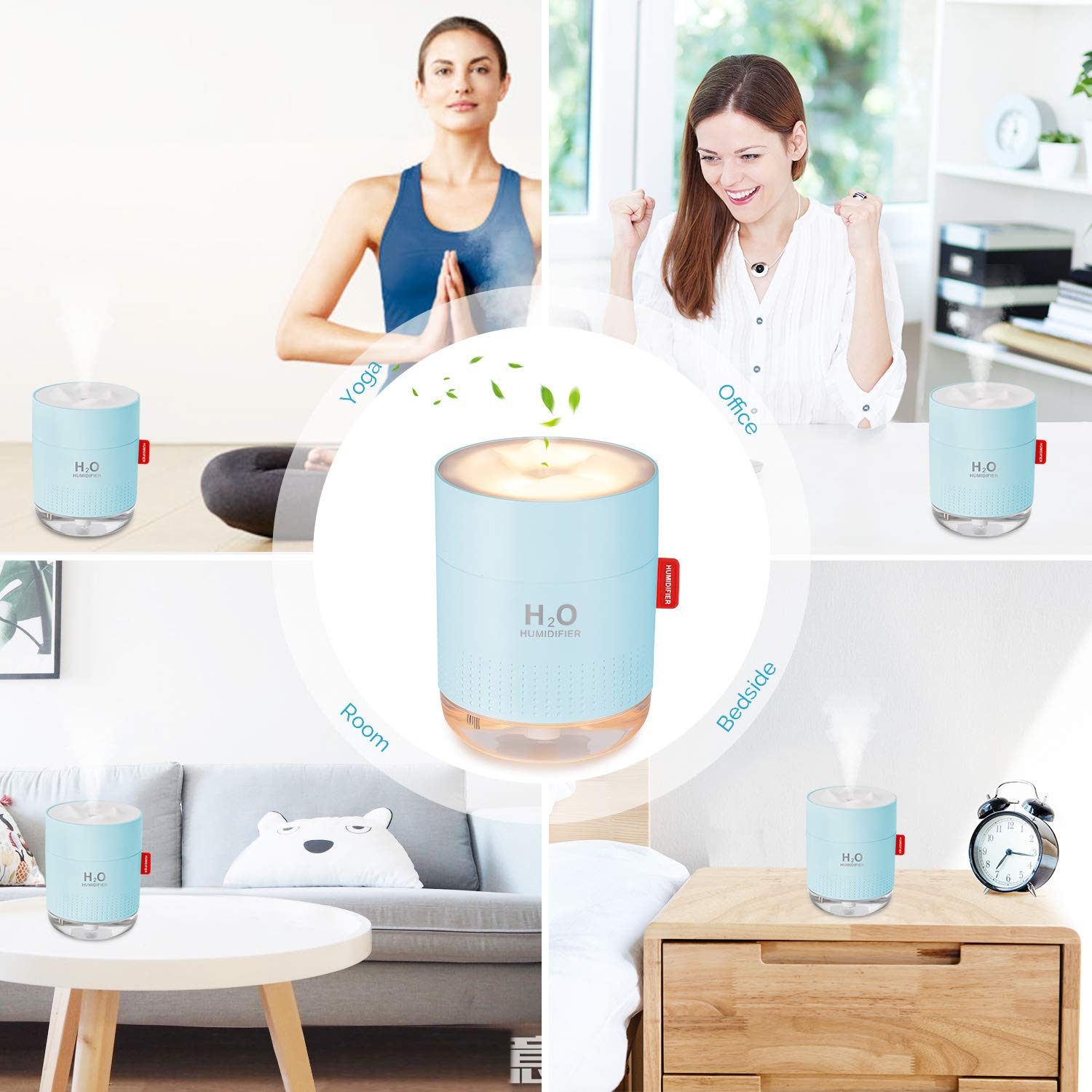 【PORTABLE MINI HUMIDIFIER】Portable and small design (3.74*5.07inch) is very easy take with you anywhere and super perfect for travel, bedroom, office, which is effectively moisturize dry skin and help you reduce skin peeling.