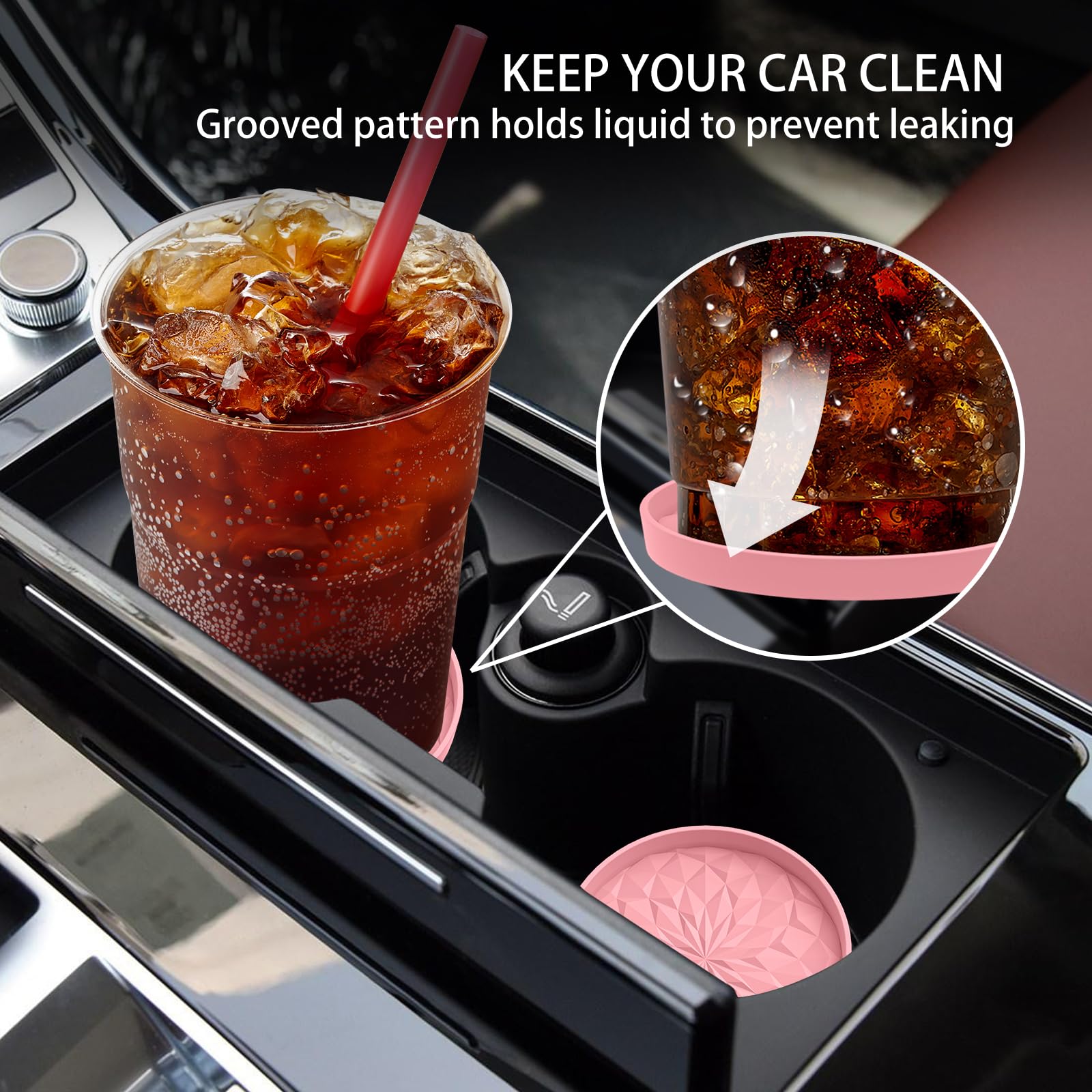 FIT MOST CAR CUP HOLDER SIZE: The thickening car cup coaster's thickness is 0.27'', the deep hem design can hold more overflow of water, juice and liquor from the cup. Diameter: 2.75'', which is suitable for most car cup holder applications. [ Please measure your car's cup slot size before purchasing, to avoid the size error to bring you trouble. ]