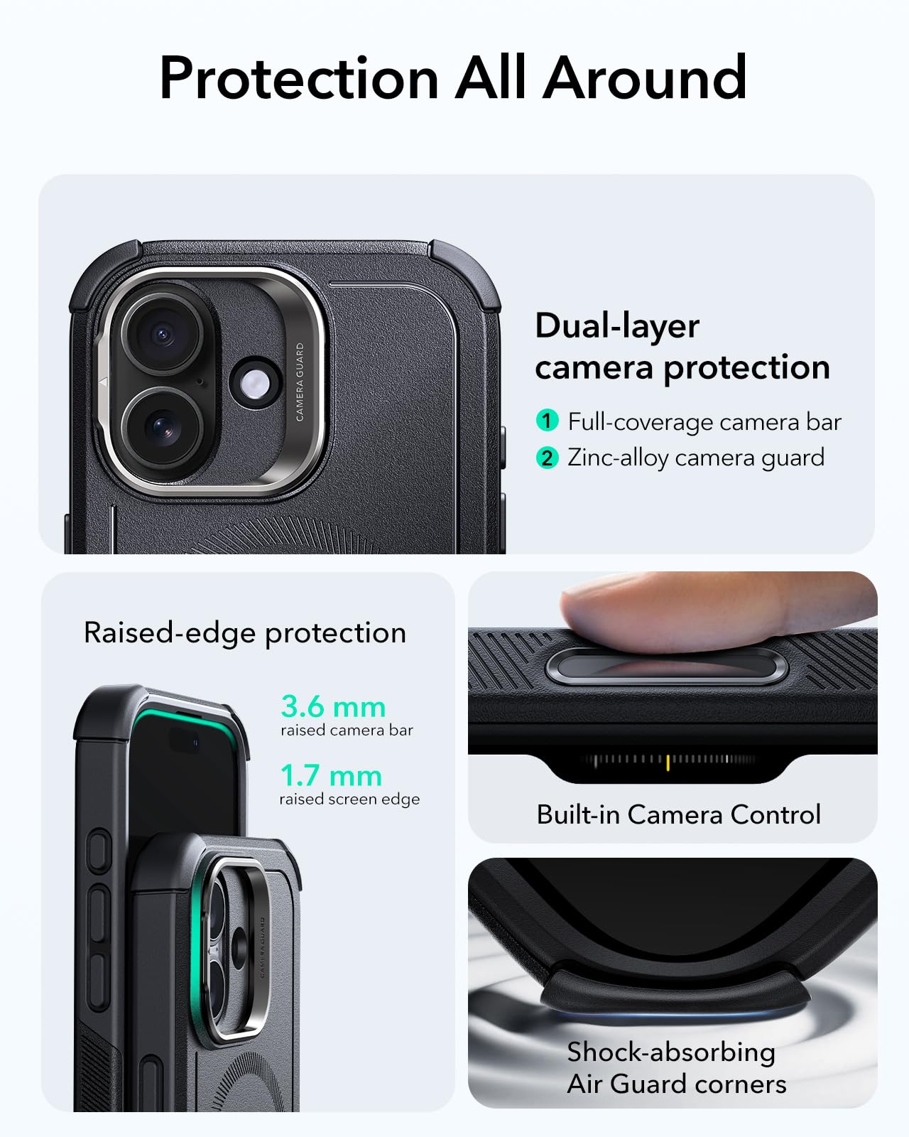 Military-Grade Protection: rigorously tested to ensure 7x total protection on all sides, 3-layer structure with a hard TPE and PC outer shell resists impacts and scratches, while the soft inner shell absorbs shocks, protecting against drops up to 23 ft
