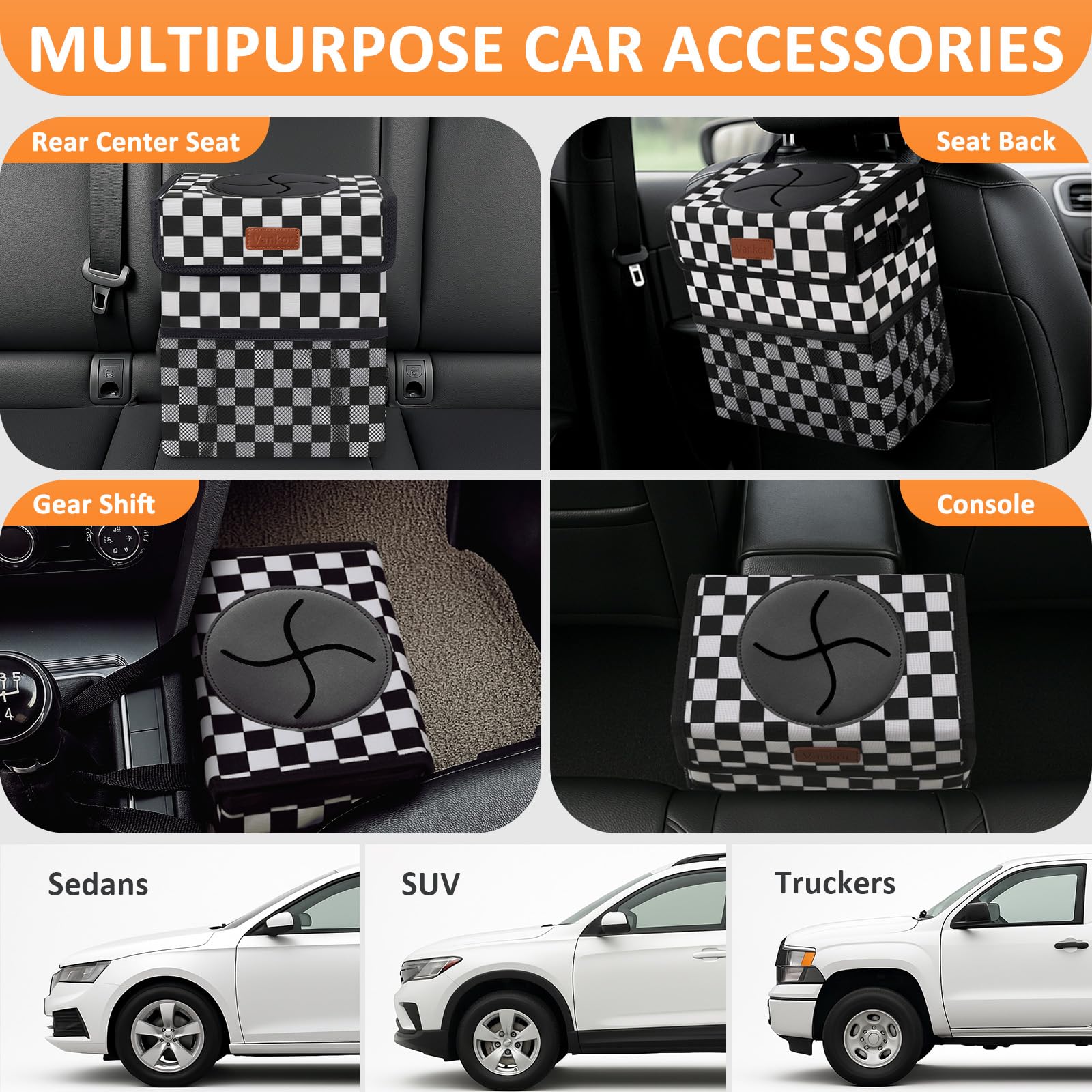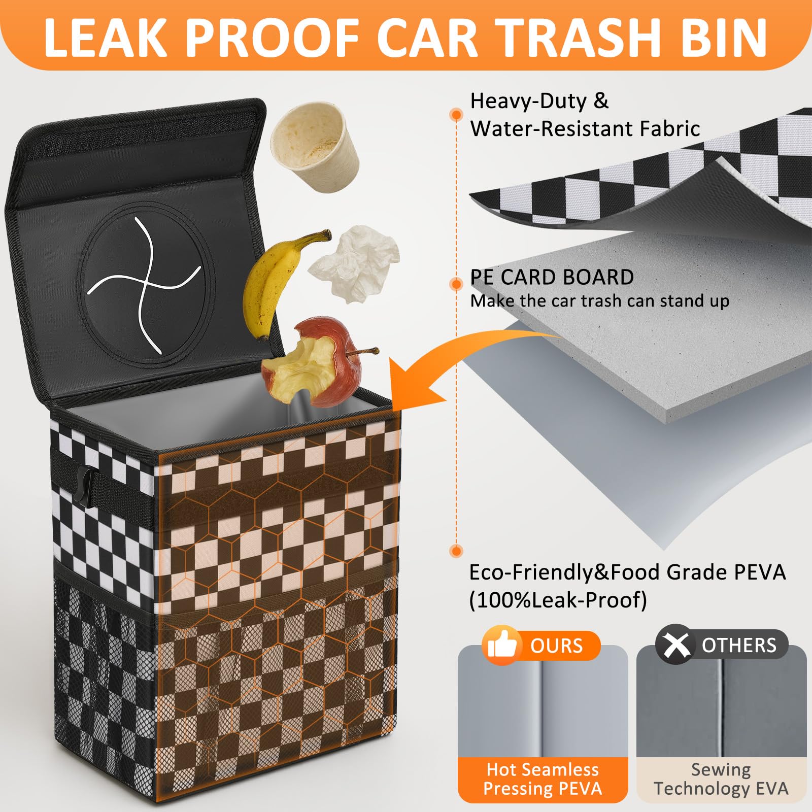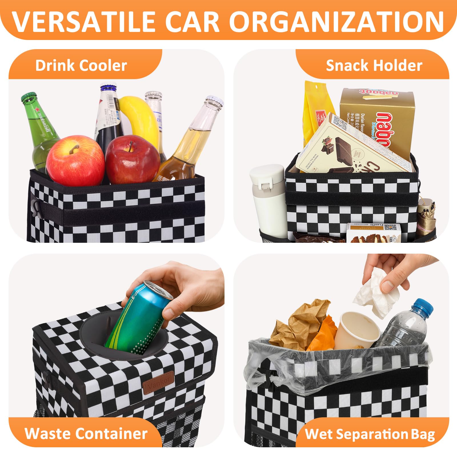 Keep Your Car Clean: Are you always bothered by the messy of the car interior; Vankor's car trash can with lid will help you to solve this annoyance; This cute car trash can will be helpful for keeping your car clutter-free, ensuring you are in a good mood while driving; Large car trash can with an adjustable strap is hung on the gear shift, glove box, headrest; You can also display the hanging car trash bag on the floor, hanging on the back seat, co-driver seat, or any place in your car