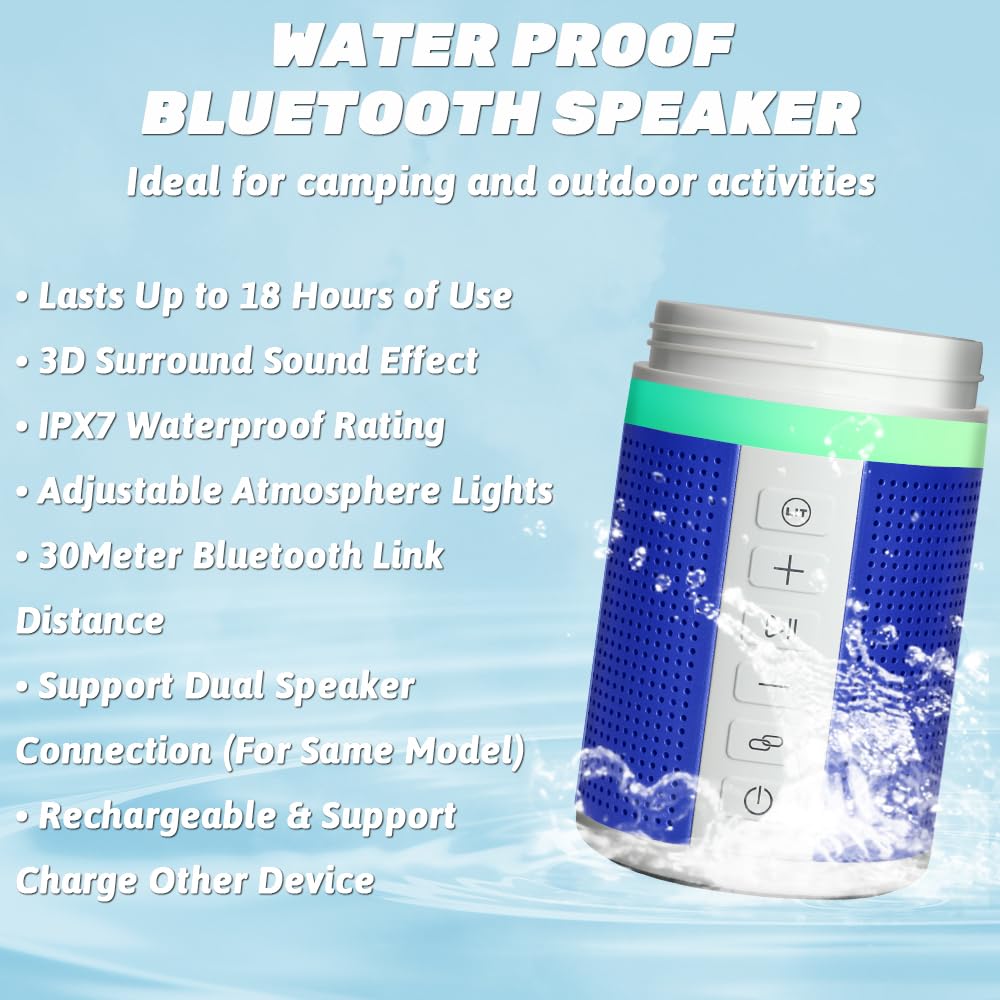 Surround Sound & RGB Light Mode : Experience unrivaled 3D stereo, clear sound and heavy bass quality with our full range speaker; 4 Adjustable colorful RGB light mode give you a cozy and romantic atmosphere for outdoor activities at night