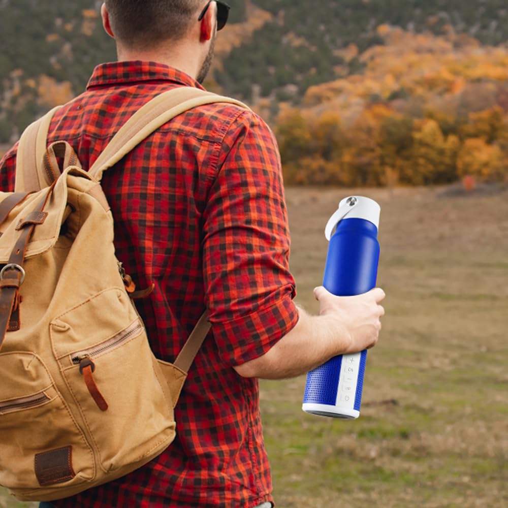 Smart Water Bottle: 20oz Insulated water cup combines with a detachable Bluetooth speaker and fancy LED lighting effects; Rechargeable Bluetooth speaker can use up to 18 hours on a single charge; Bring joy to your sports and keep you hydrated