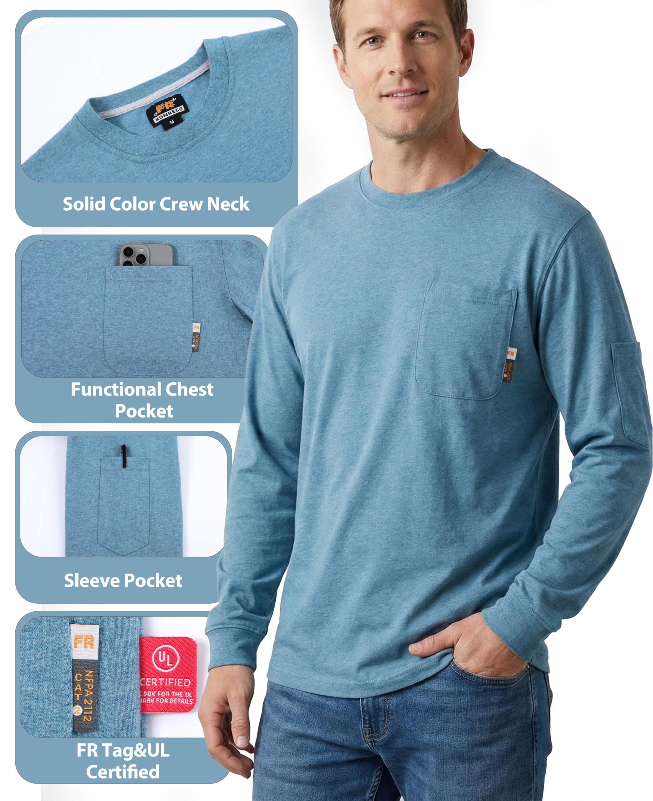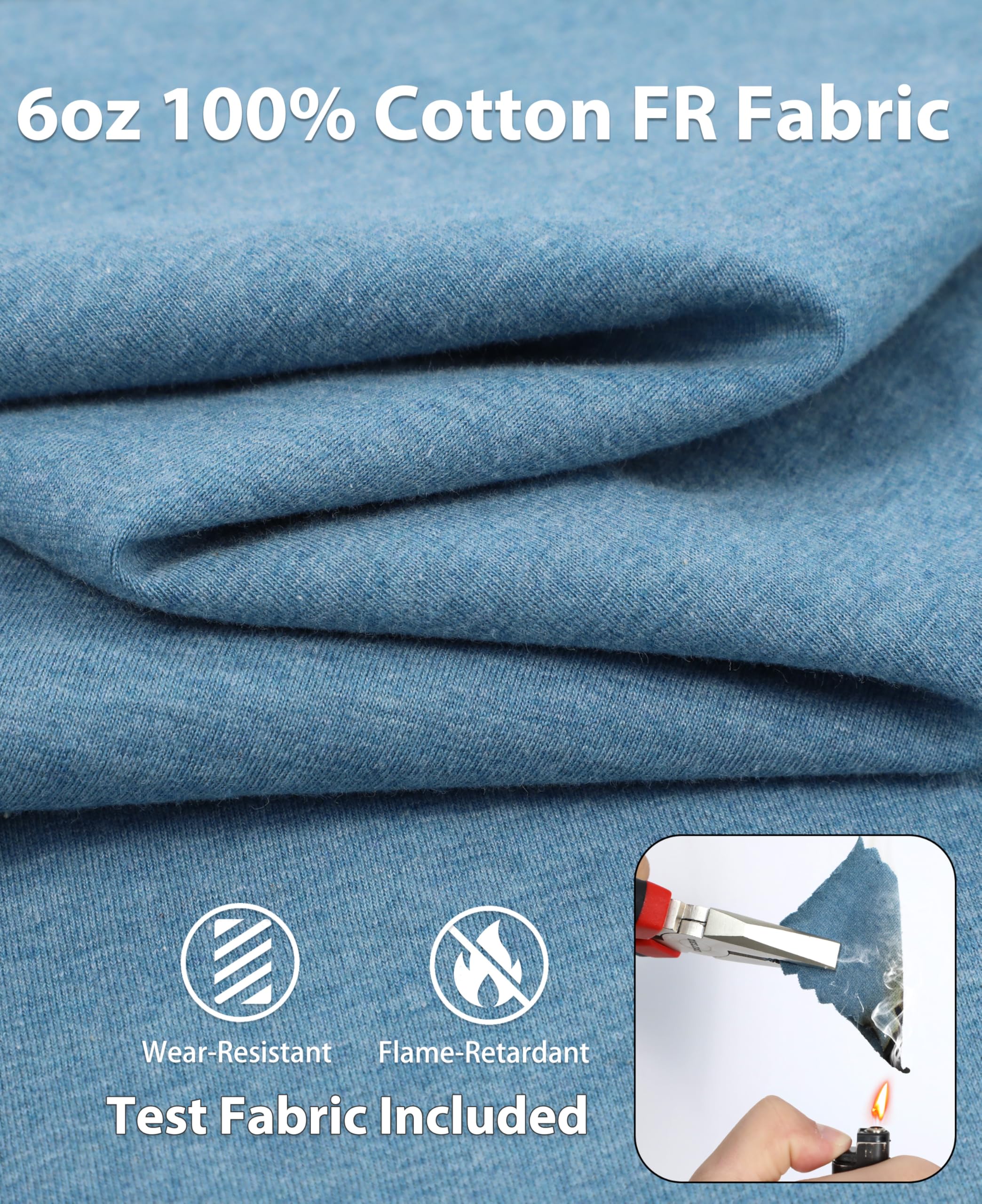 [Authoritative Certification]There is a FR tag on the pocket of the shirt and a UL tag on the inseam.The product will come with a sample of the shirt fabric,which you can use to test its FR properties with fire or to sew the shirts after minor damage.It is certified by UL to comply with ASTM1506,NFPA70E,and NFPA2112 standards.