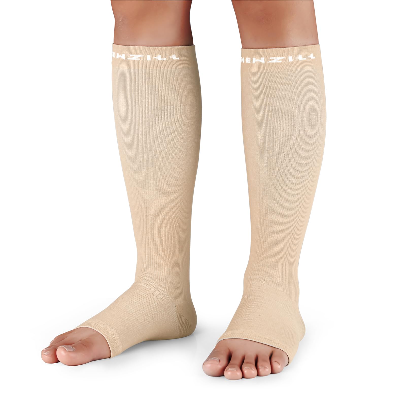 LARGE FEET OR TOE? _ For those with long toes, it can be very challenging to force your feet into regular-sized compression socks. Our Open-toe stockings can be a great way to reap all the benefits of tradition compression socks while still having plenty of room. Similarly, if you have hammertoes (a condition in which they curl downwards), NEWZILL toeless socks are probably your best choice.