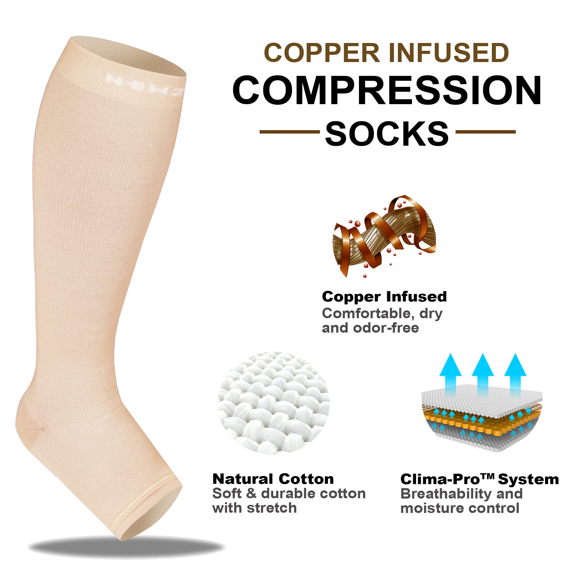 WHY OPEN TOE? _ Shape-to-Fit Open-Toe Compression Socks allow for easier on & off and for wear with sandals, open toe shoes and open-toed boots! If you love wearing flip flops as your leisure footwear and also like to travel, NEWZILL toeless socks are the perfect gift for you while watching onboard entertainment with a fancy meal or comfort food on the side.