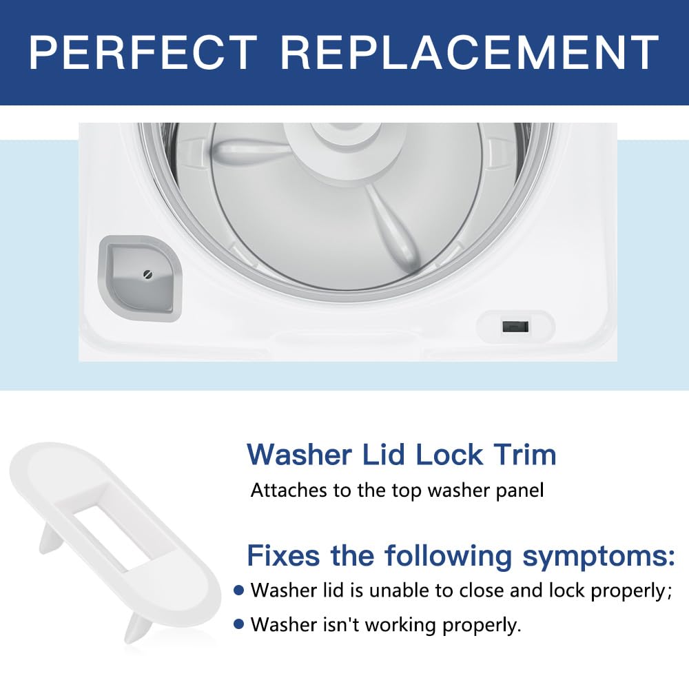 【Premium Quality】The Washing Machine Lid Lock Bezel is made of durable, high-quality material and well-tested by the manufacturer to ensure the best performance for your washer. Fixes the following symptoms: Washer lid is unable to close and lock properly, or the washer isn't working properly.