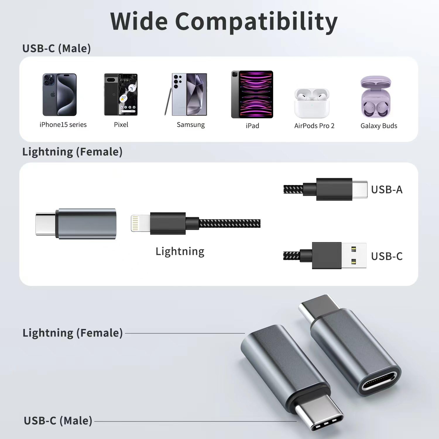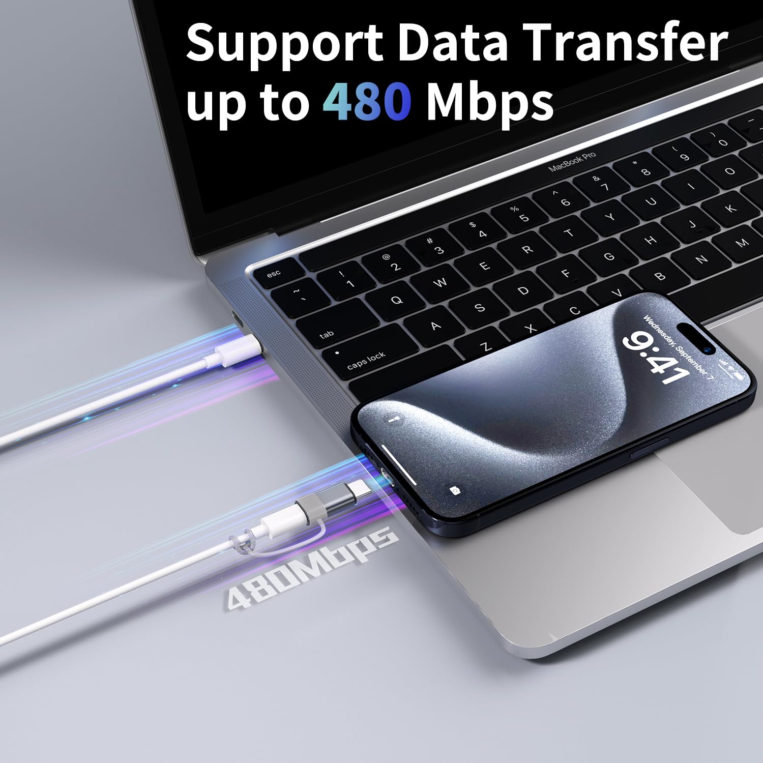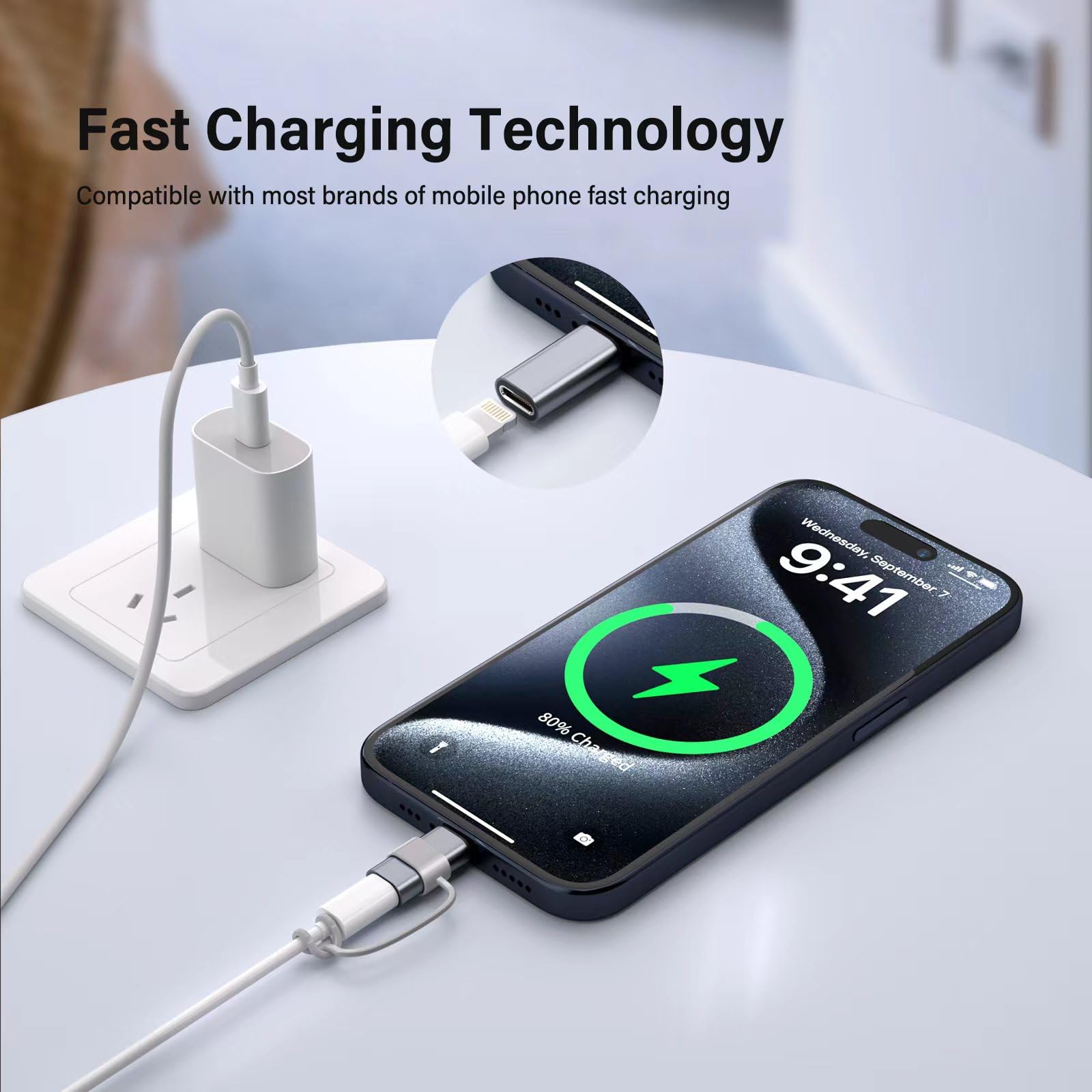 Support Charging and Data Sync:The lightning to USB C adapter(4Pack) support charging and the data transfer speed is up to 480 Mbps; the lightning to usb-c adapter has a built-in 56 KΩ pull-up resistor for safer charging;No installation required—simply plug and play