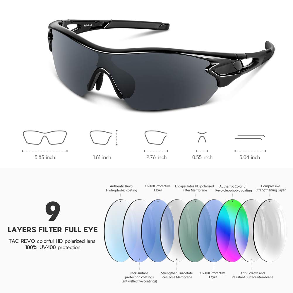 99.9% UV400 Protection: REVO colorful HD polarized lenses block 99.9% of harmful UVA & UVB rays; restore true color with high-density Revo coating; improve visual clarity and contrast; reduce reflected and scattered light; provide excellent eye protection