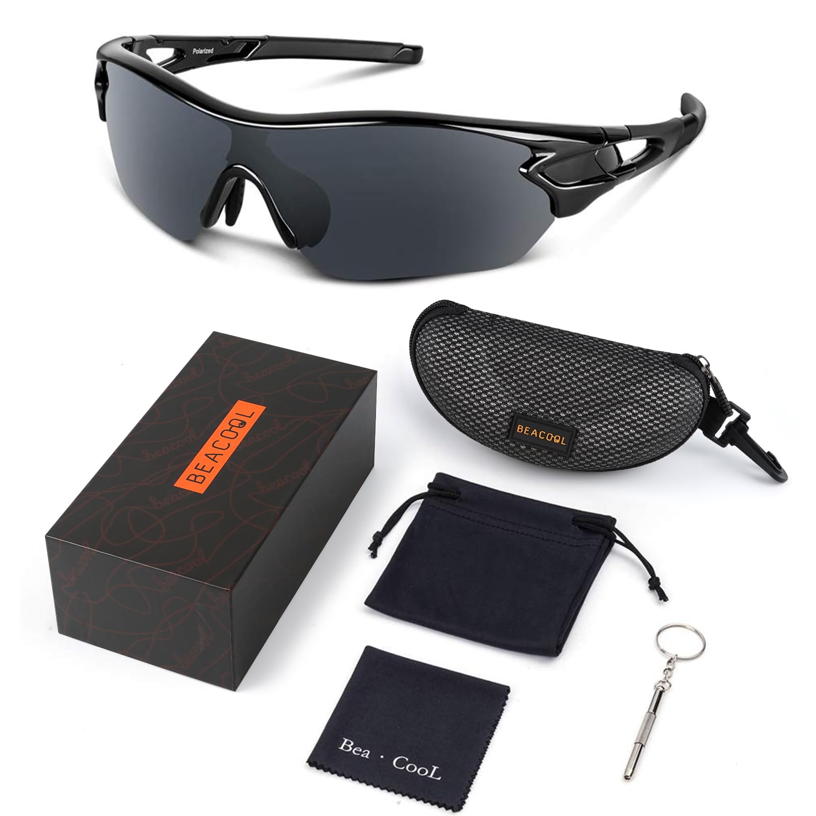 Complete Package: Includes BEACOOL sunglasses, a hard protective case, a cleaning cloth, a pouch, and a sunglasses screwdriver; perfect gift for sports and outdoor enthusiasts