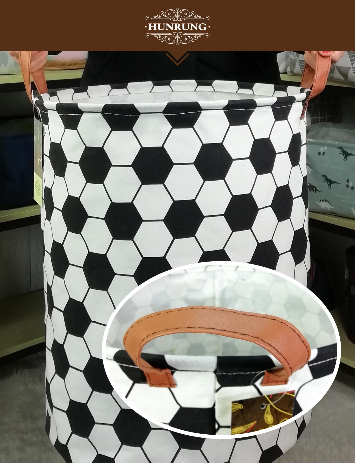 HUNRUNG Laundry Hamper,Large Canvas Fabric Lightweight Storage Basket Toy Organizer Dirty Clothes Collapsible Waterproof for College Dorms, Children Bedroom,Bathroom(Roud-Football)
