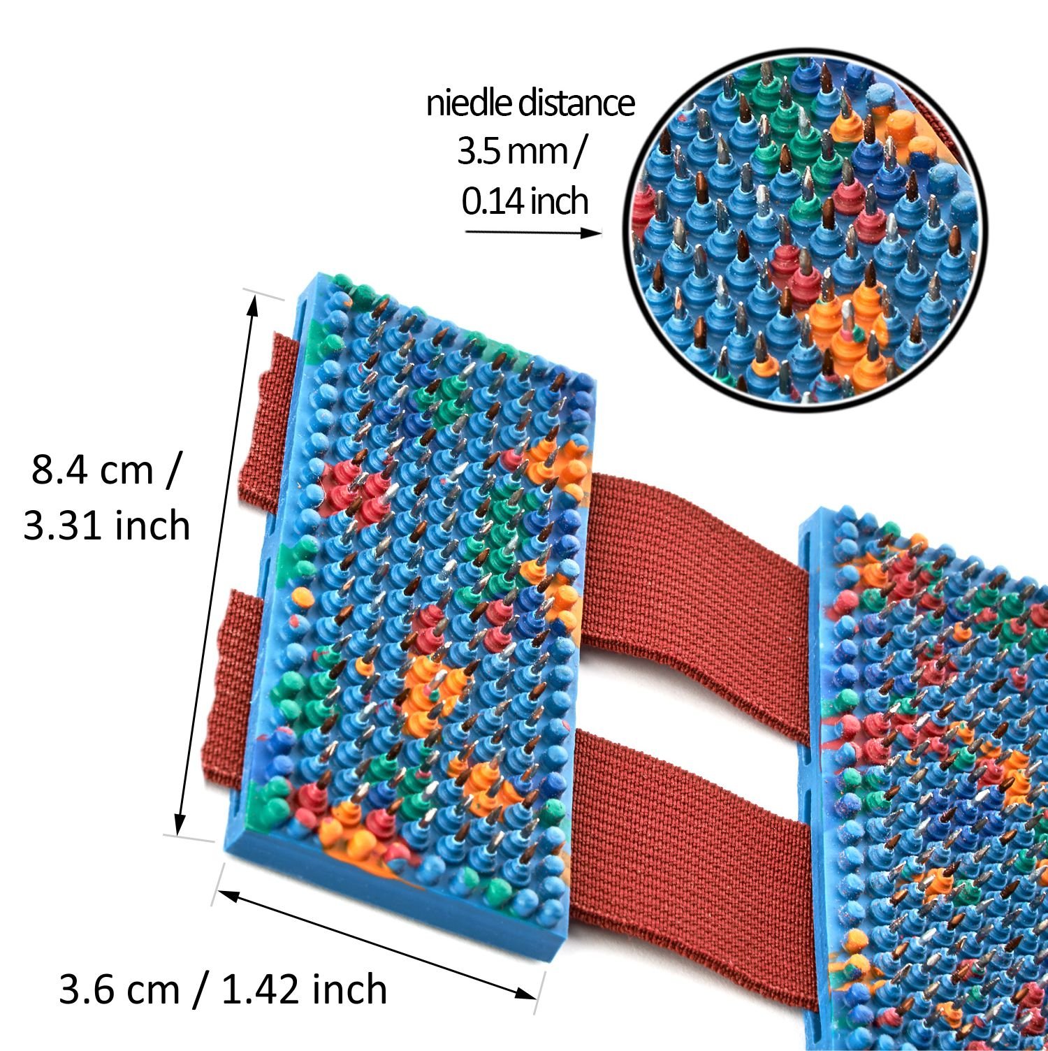 This premium Belt & Plates Applicator is the latest in safe and natural treatments. Suitable for people who have to sit for long periods. After just a few treatments you will begin to feel results. * Relief of pain * A pleasant feeling of relaxation * Reduced fatigue by normalizing sleep * Increased vitality & efficiency The BELT KID 3.5 AG applicator is small and portable - wear it to the office, school - wherever. The plates are made of soft pliable rubber (each measure 3.15 x 1.4 in); with 0.14 inches between each of the 960 needles. If you don’t have the time or patience to lie on a massage mat, this is the answer for you. Thanks to the special build of 6 separated plates and adjustable belt, it can be successfully used for local treatments on any part of the body or for smaller areas. You also can wear it longer than other applicators. Depending on the effect you wish to create these are the suggestions: Toning 7-10 mins Sedative Effect 20 minutes - 2 hrs Relief from Acute Pain 10-15 mins Relief from Chronic Pain 30 minutes - 2 hrs When treated, the area of stimulation will change in appearance as it fills with blood, changes temperature, creating the perfect environment for treatment & ultimately rejuvenation of the body. This amazing patented system is a technique developed by the famous Reflexologist Lyapko (Ukraine). Ours is the only system of its kind. THE ACUPUNCTURE NEEDLES DO NOT HURT! The tops are faceted so that they cannot hurt nor damage the skin in any way. They are made from metals such as zinc, copper, iron & silver - all essential for our wellbeing. Purchase this as a gift for any occasion. You are giving the gift of health. Go ahead - BUY IT NOW. this is a very popular product and stocks won't last long - Don't miss your chance!