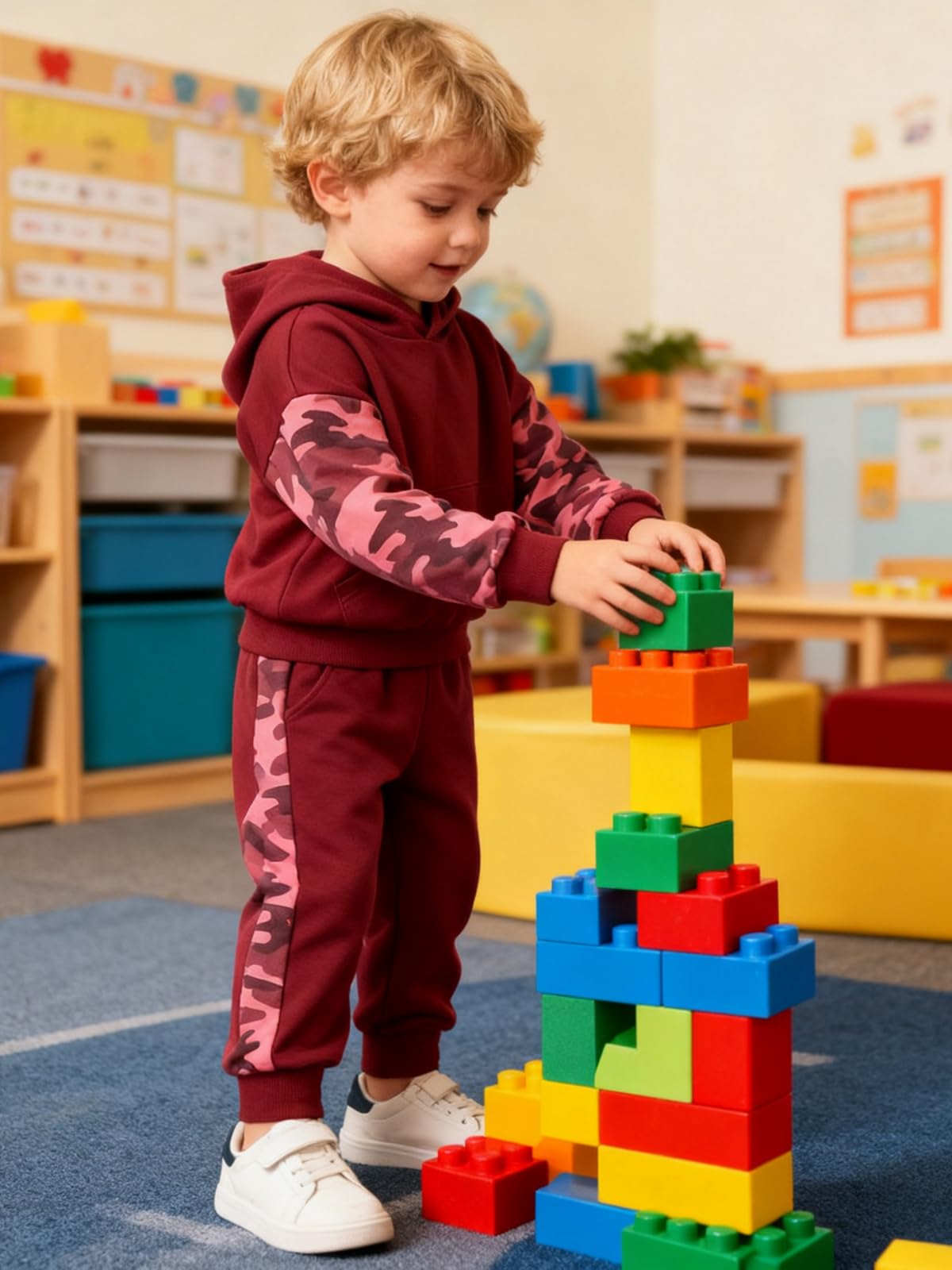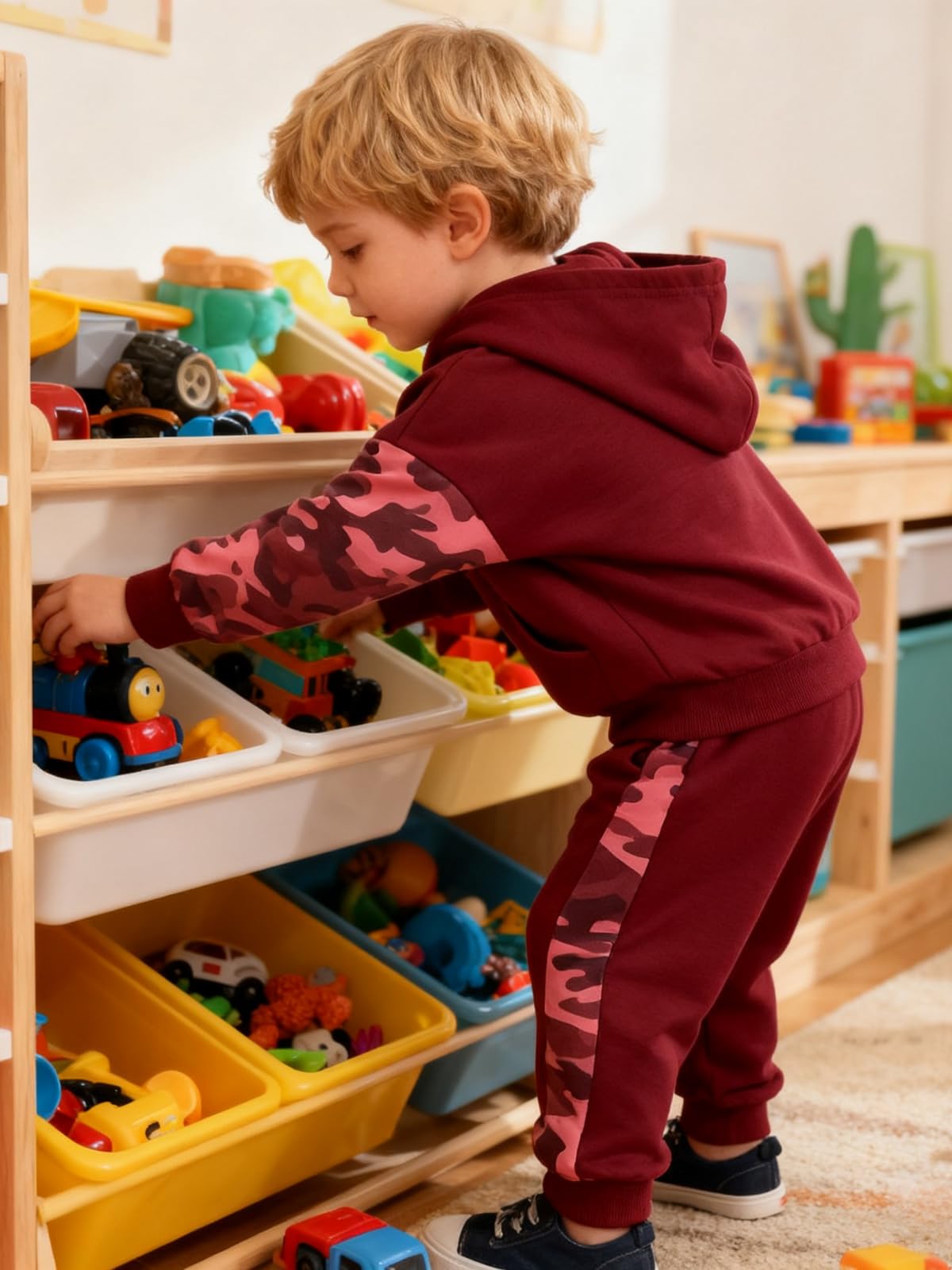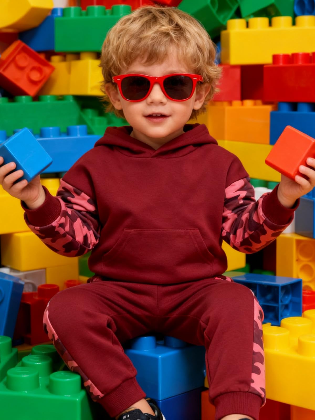 ashion Camo Color Block Design: Hooded sweatshirt and jogger pants feature matching camo color block, cute and stylish—meets "FASHION CUTE" style, making boys stand out in casual occasions.