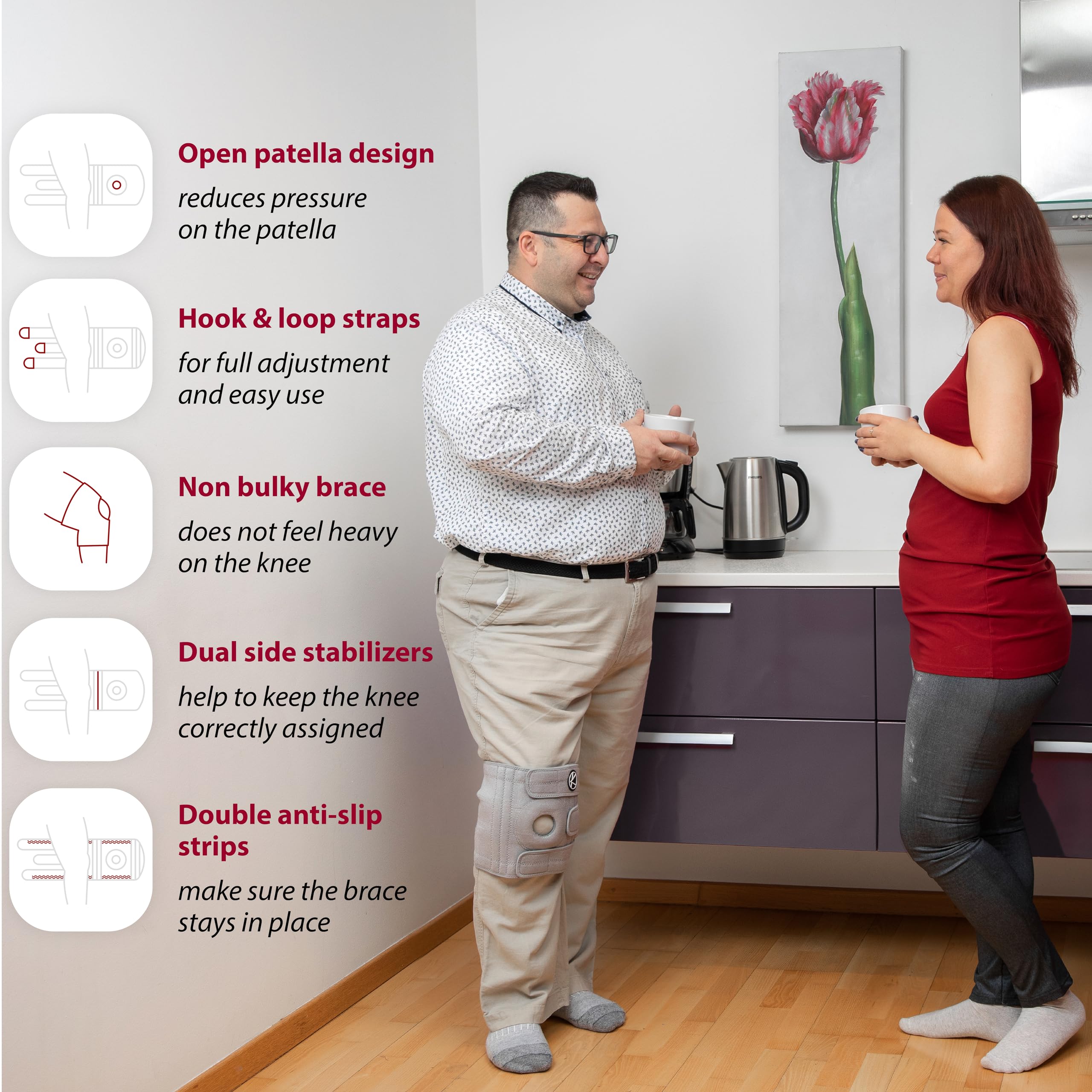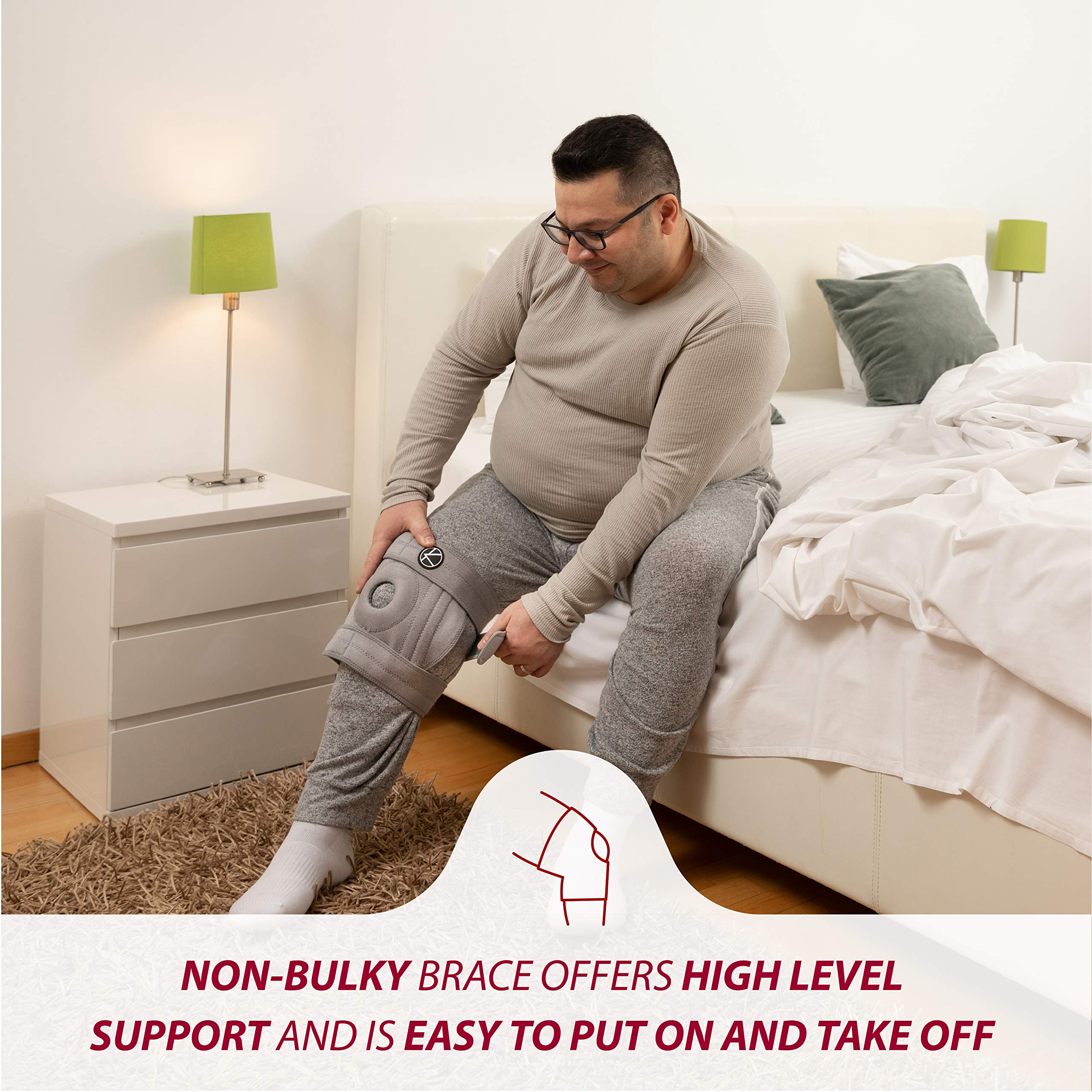 Easy to put on & take off by yourself - knee braces for knee pain plus size are usually difficult to use and uncomfortable to wear. KARM plus size knee brace is really easy to use by yourself. Adjust 3 straps for your perfect fit & support.