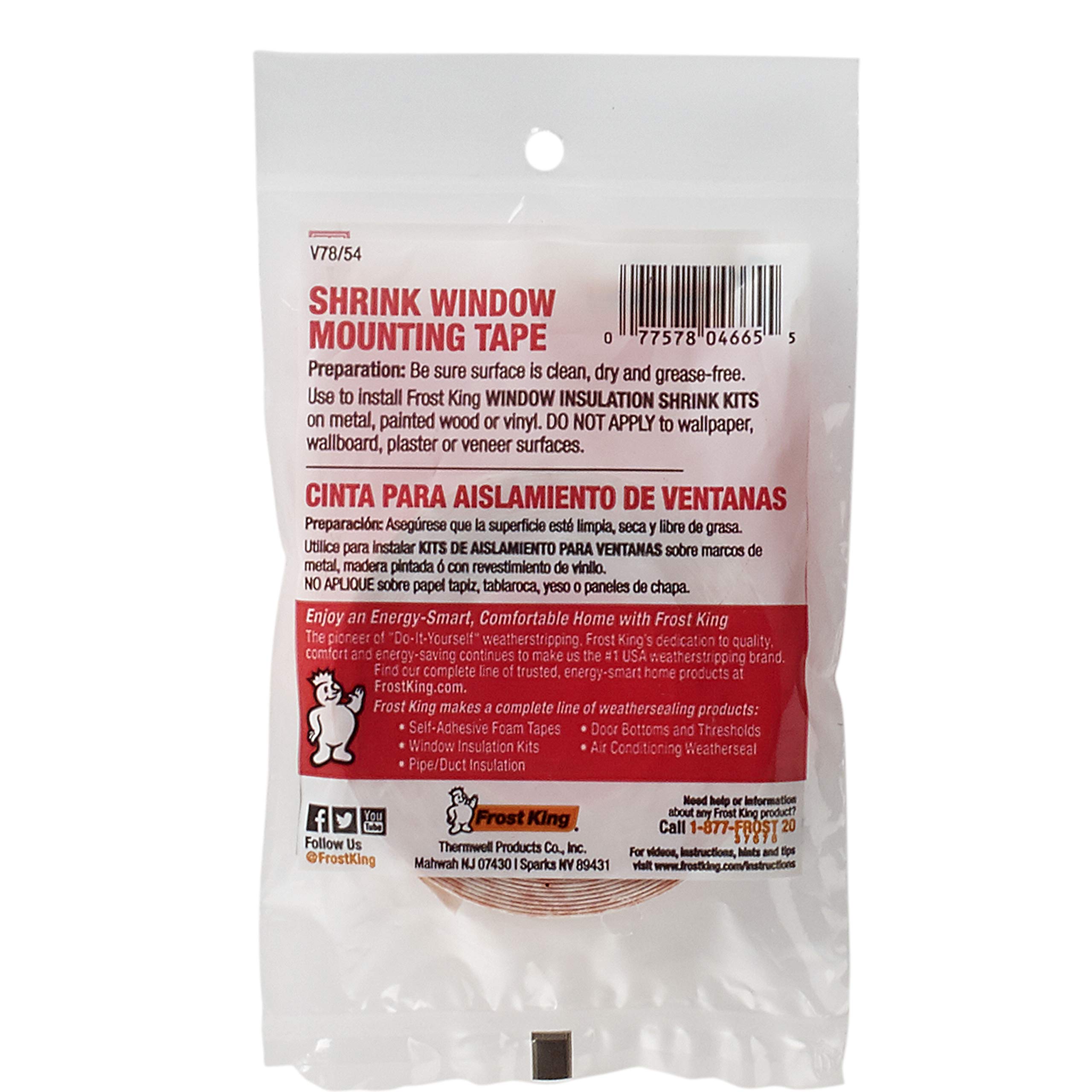 Product Description Frost King Double Face Mounting Tape, 1/2"x54' - For 3 Windows Manufacturer Contact Information 1-800-526-5265