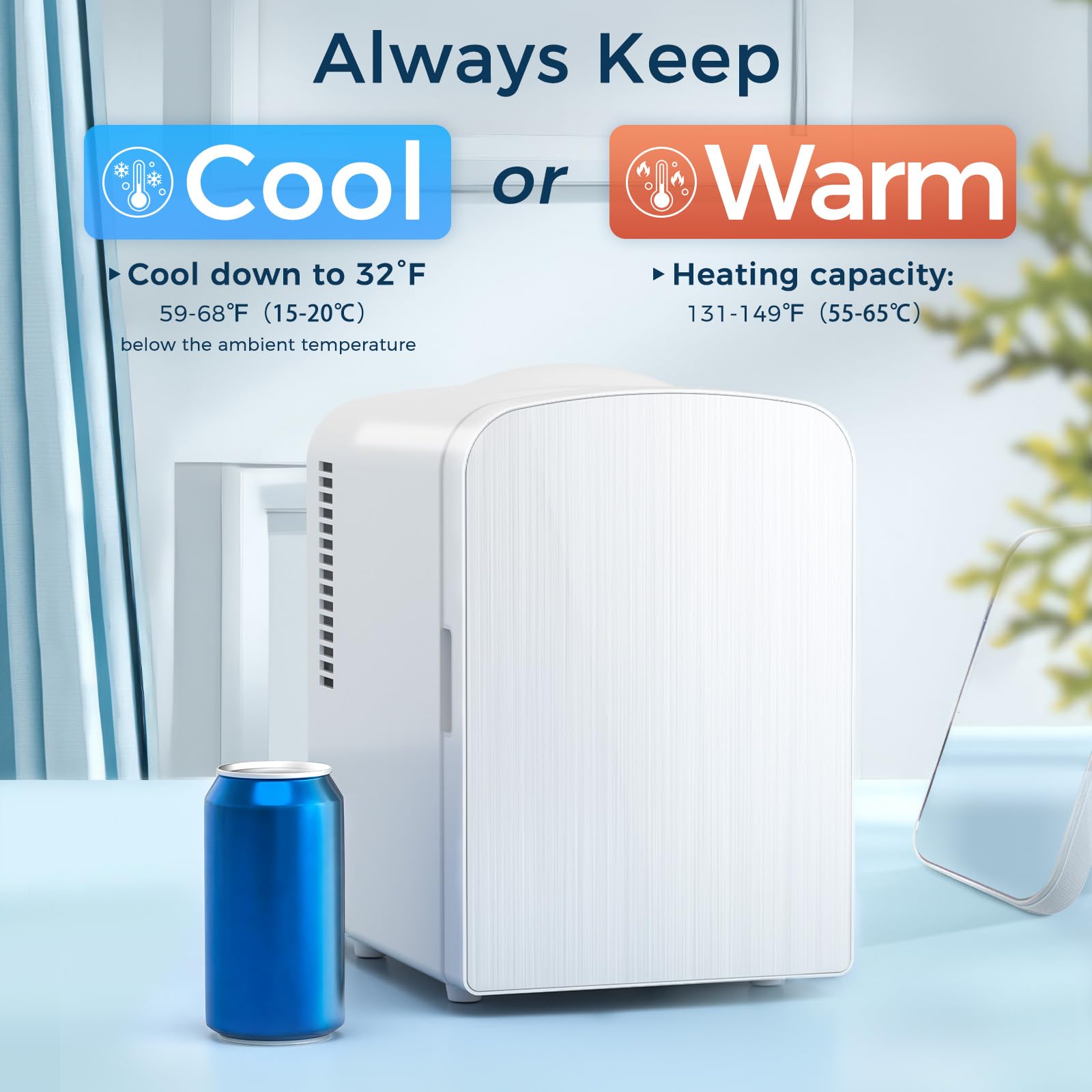 4L CAPACITY: Store 6 can/12 oz with no worry; dimensions are 9.65"D x 7.09"W x 10.24"H; The removable shelf makes the fridge become more flexible to store small items like breast milk, skincare, cosmetic, or food.