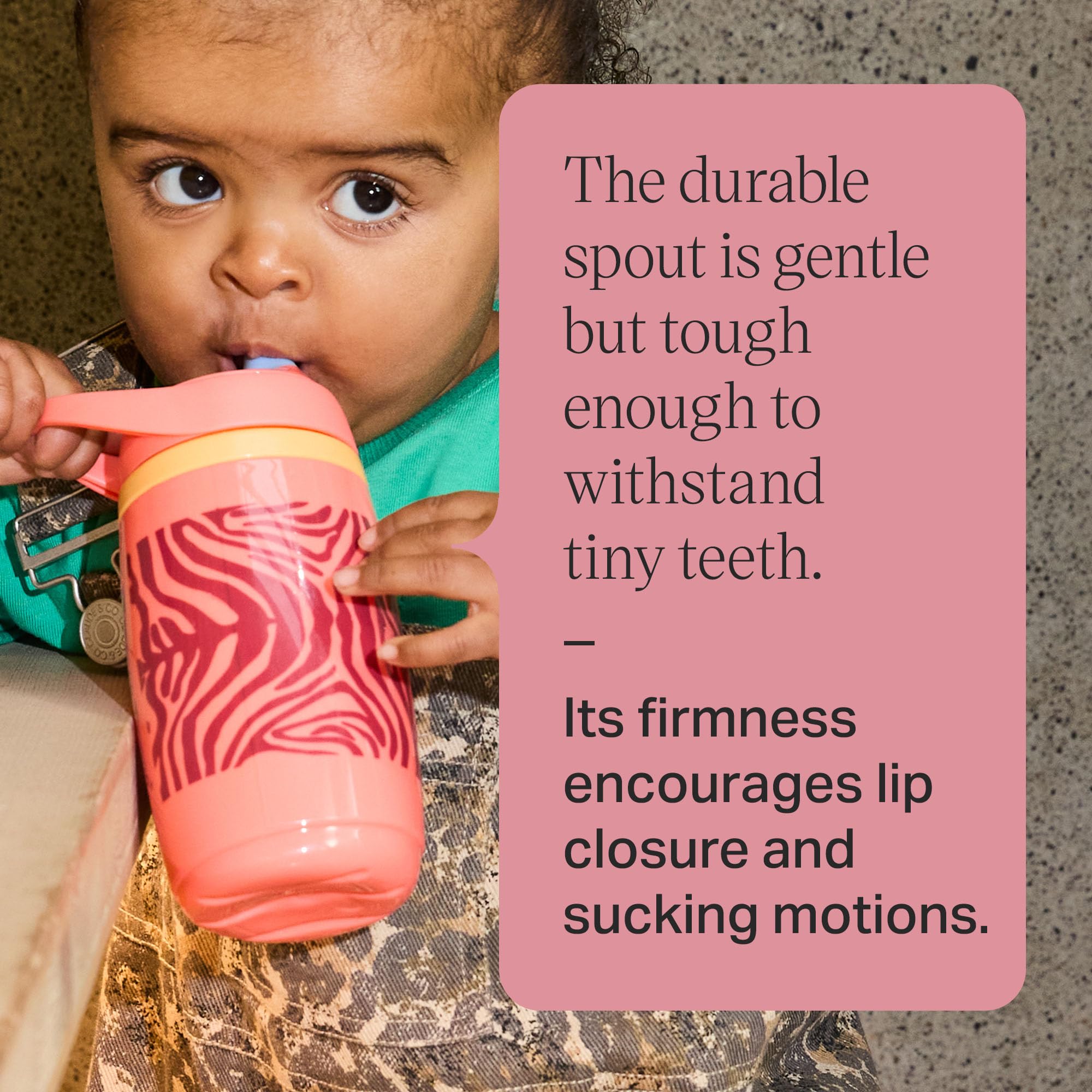 Bite-proof: The durable spout is gentle on little mouths but tough enough to withstand tiny teeth. Its firmness encourages lip closure and sucking motions