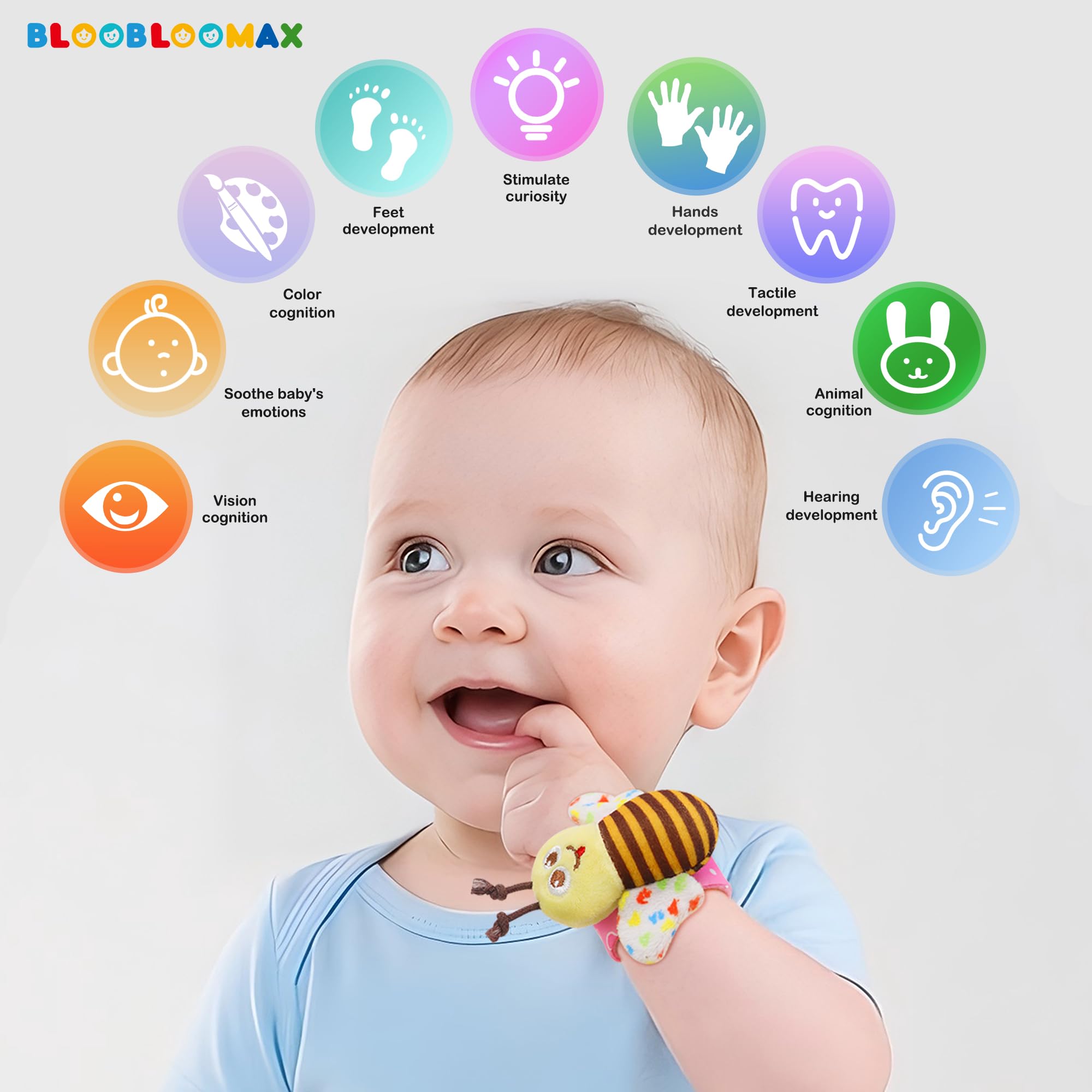 EARLY DEVELOPMENT -- These colorful smiling cute animals and bugs will entice little baby to touch, grab and look at them. It will help to develop their hand, foot and eye co-ordination. Strengthening Color Cognition/Vision Cognition/Hearing Development & Voice Development.