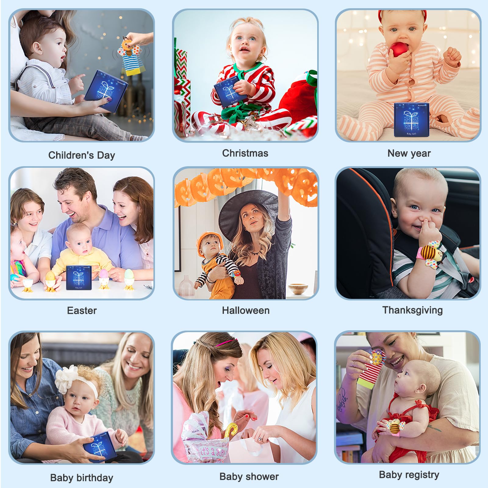 PERFECT BABY GIFTS -- Give these Soft Baby Rattles Toys as the perfect infant toy gift.Suitable for Baby showers/Baby sprinkle/Sip & See gift/Newborn baby gift/Birthday gift/Registry gift/Easter/Halloween/Thanksgiving/Christmas/Holiday gift/Christening gift/'Just because'gift.