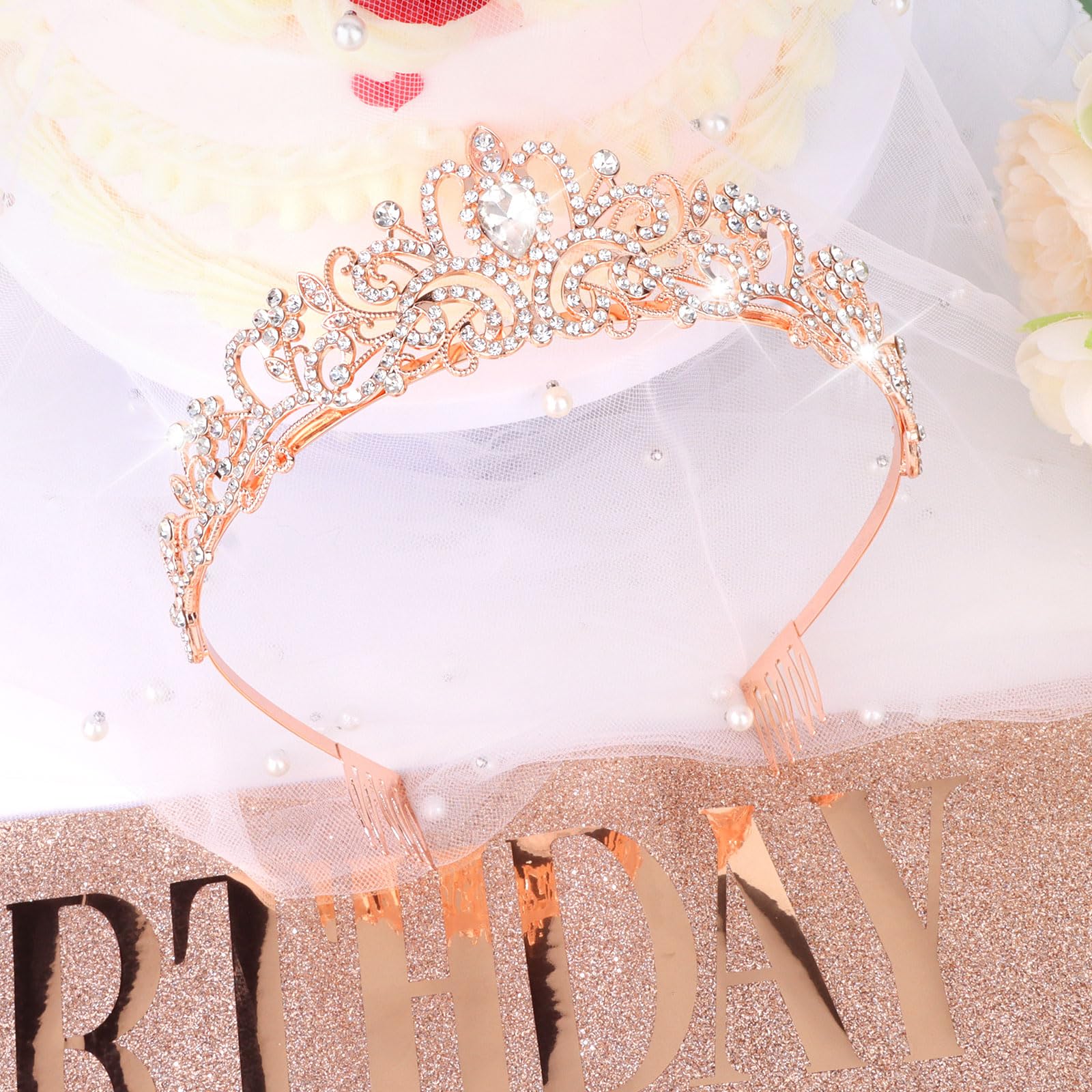 Rhinestone Birthday Crown: Each Semato birthday crown is inlaid with hundreds of rhinestones and this makes it shine in the light. Comb at the end can make the crown more firmly worn. Add this tiara to your birthday party and you'll be the center of attention