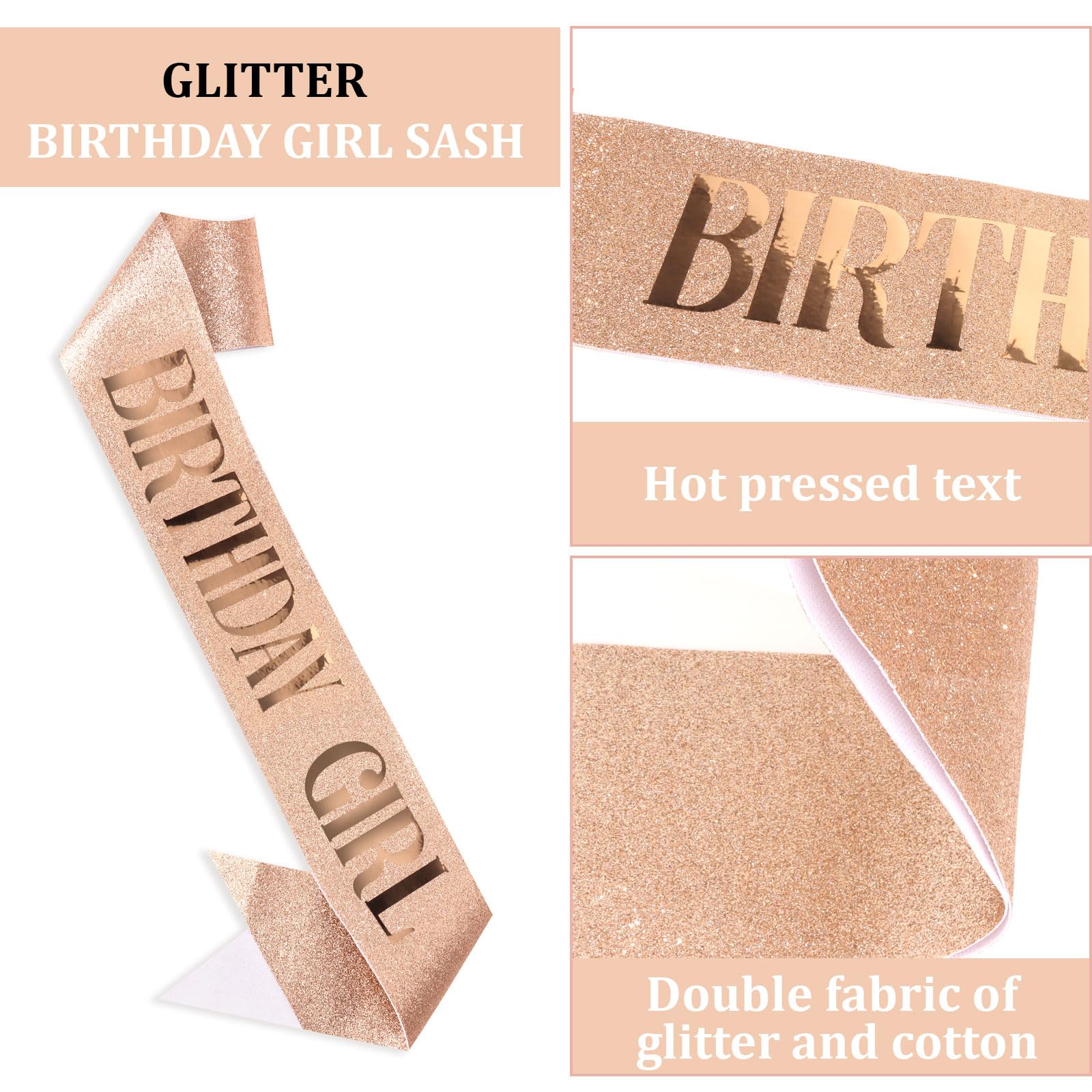 Glitter Birthday Queen Sash: In the selection of the cloth, we used the shiny gold cloth to make you the most eye-catching princess at your birthday party(A pin is included in the package to connect the sash). Besides, we adopted the hot pressed design for the text to avoid the embarrassing situation of the hook and the printing falling off