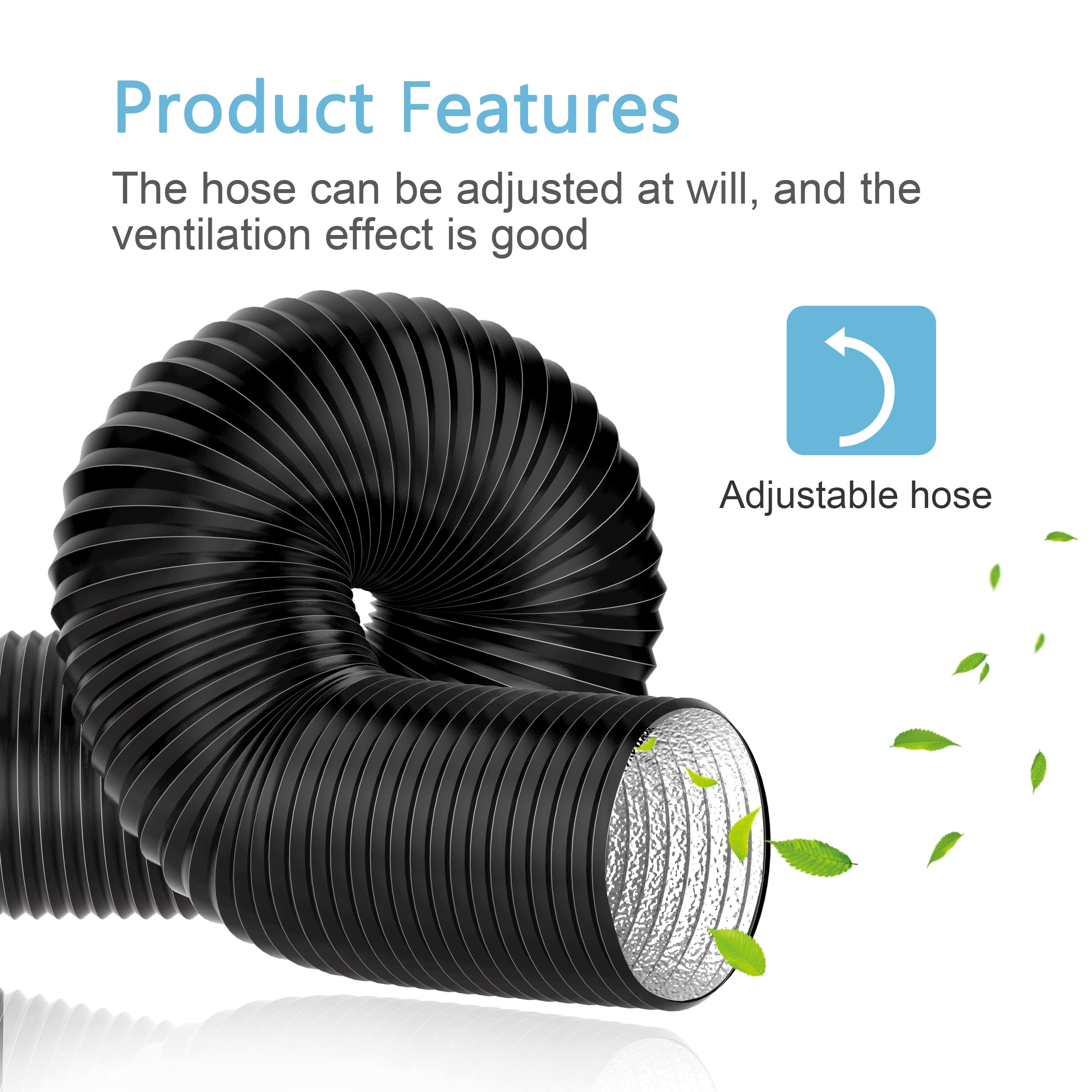 3-Layer Tough: Keep your ventilation system free of rips and pin holes. Under the Black PVC layer our ducting is built with 2 layers of Aluminum Foil With a layer of PET and Steel Wire Helix to preserve the shape,keep your ventilation system free of rips and pin holes