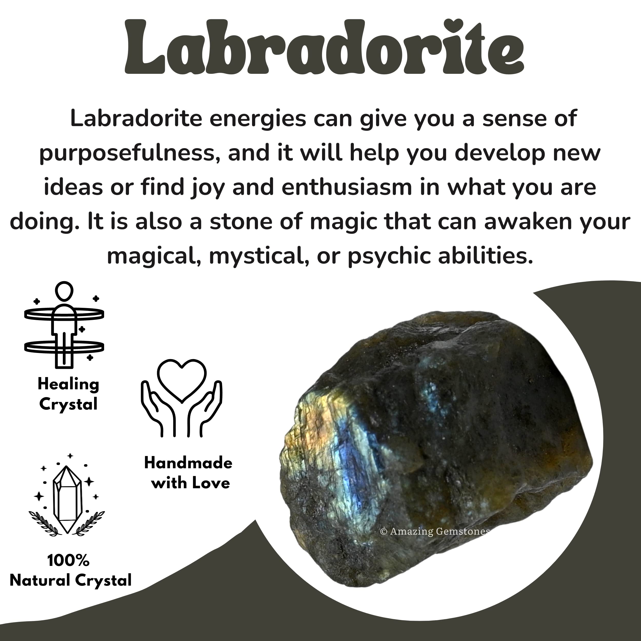 Natural - You will receive authentic raw stones crystals, labradorite energies can give you a sense of purposefulness, and it will help you develop new ideas or find joy and enthusiasm in what you are doing. It is also a stone of magic that can awaken your magical, mystical, or psychic abilities.