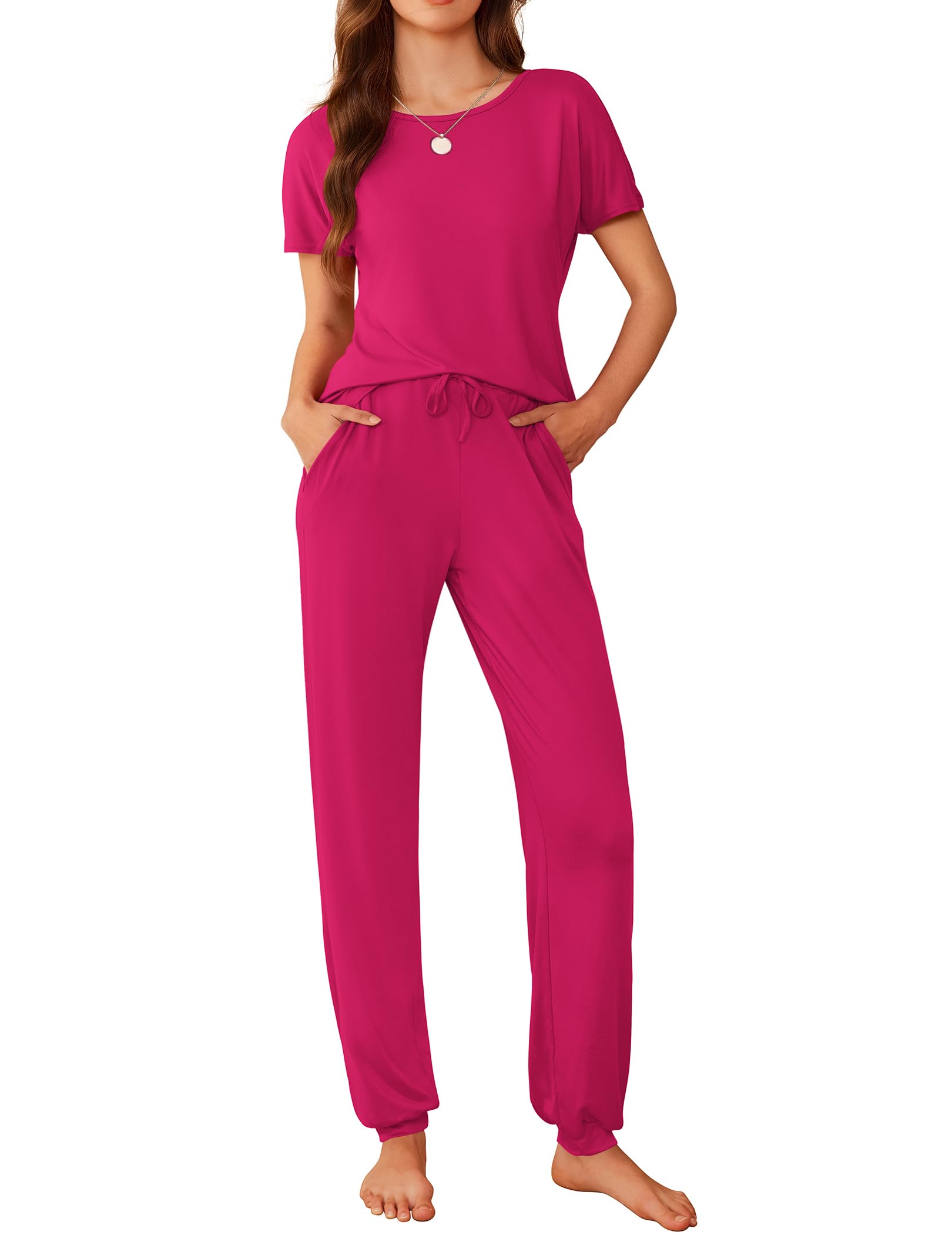 Short Sleeve Tops: The short sleeve pj sets top is classic crew neck, which will allows you to match necklaces with various styles. And it is also convenient to put on and take off clothes.