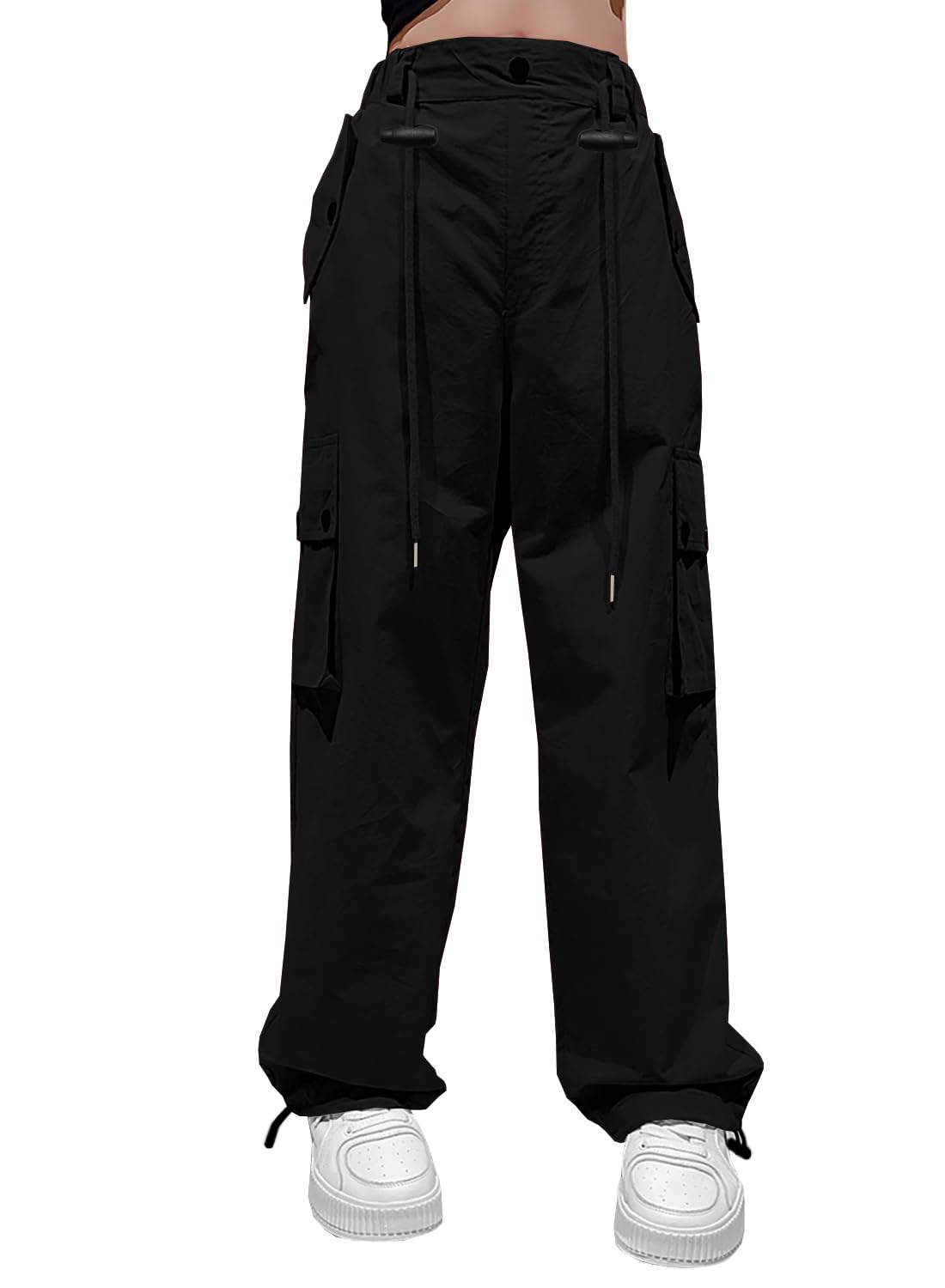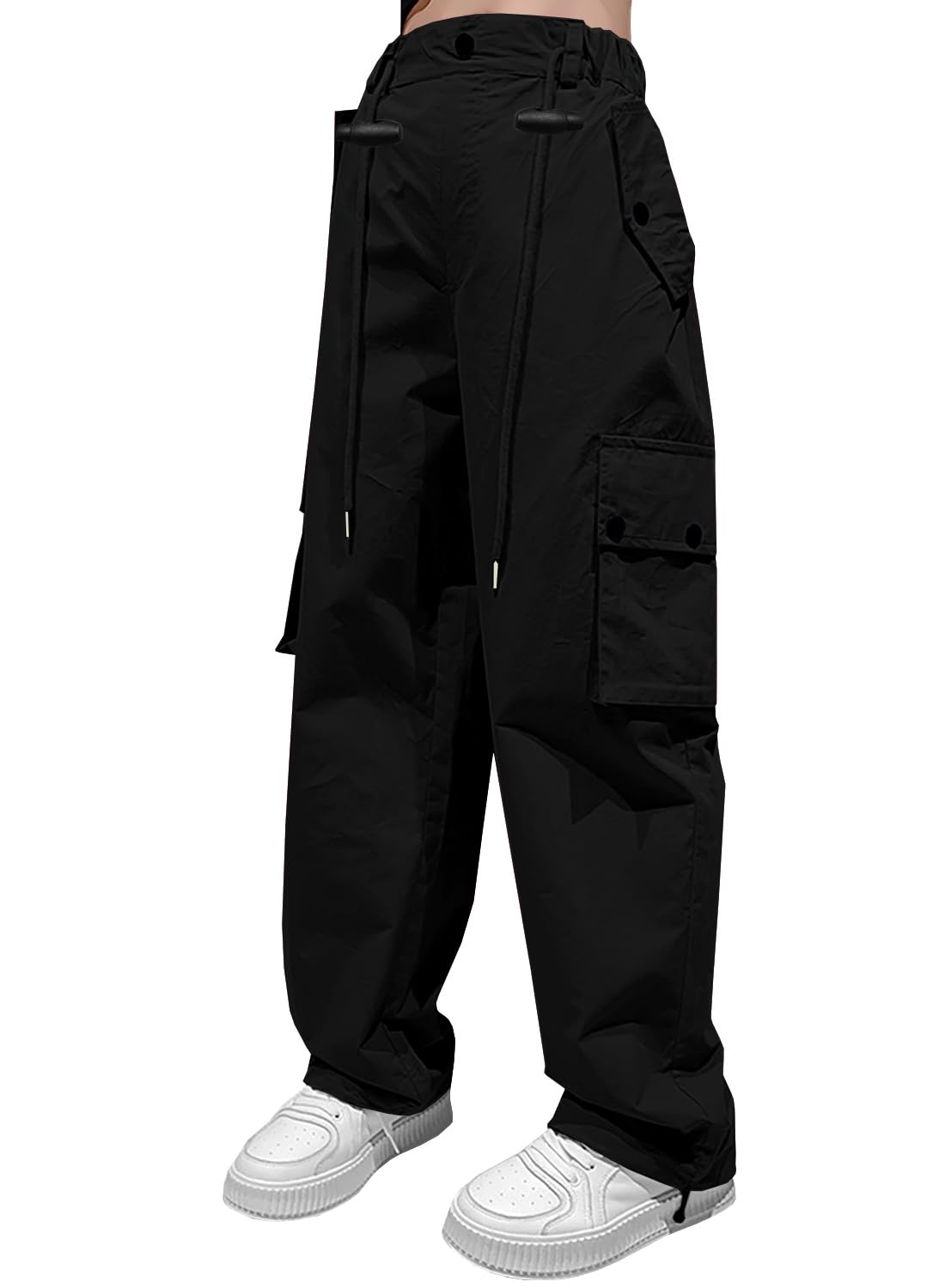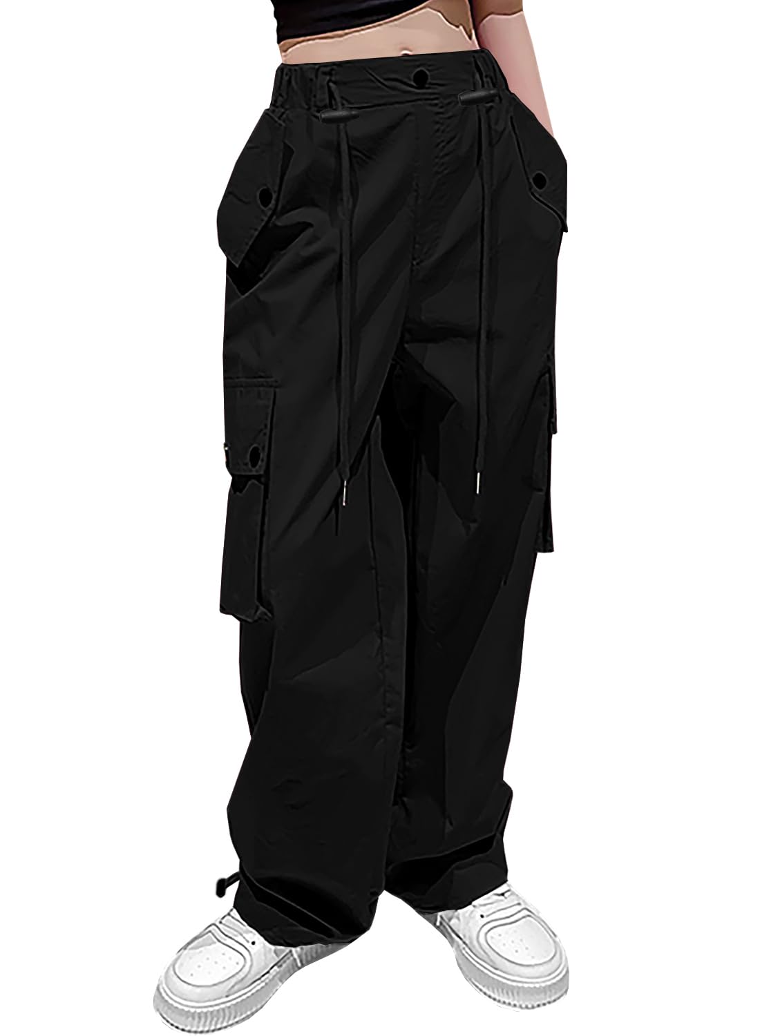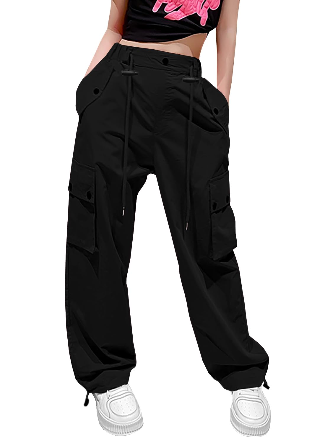 Design: These Girls Y2k Cargo Parachute Pants feature a modern design with drawstring waist and cuffs, offering two different ways to wear them.