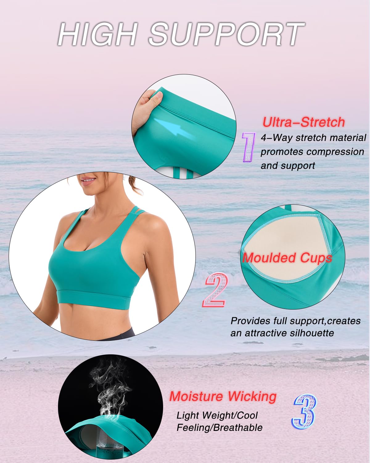 ✅ 【SWEAT OUT IN STYLE! 】: Made from a flexible four-way stretch fabric that supports your body as you move. Enjoy the freedom of movement as the open back styles aim to keep you comfy and cool while you bring on the heat! Running sports bras for women with wide waist band for that support we all need!