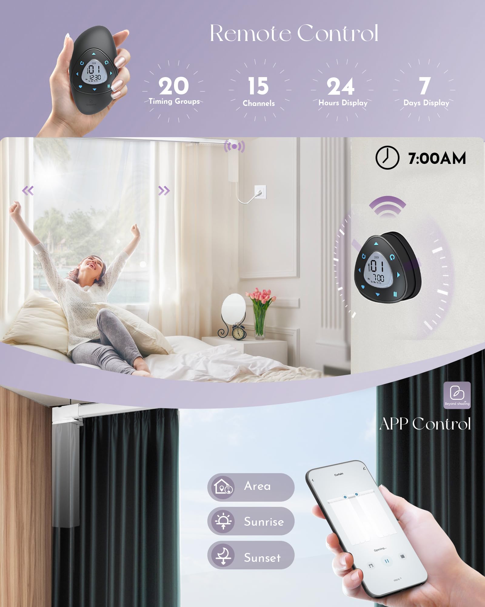 15-Channel Timing Remote: Able to seperately & group control max. 15 smart curtains, provides favorite position as well. 20 Timing Scenes addable, combine any graywind smart curtains to any schedules to achieve automatic control. Support handheld or wall-mounted.