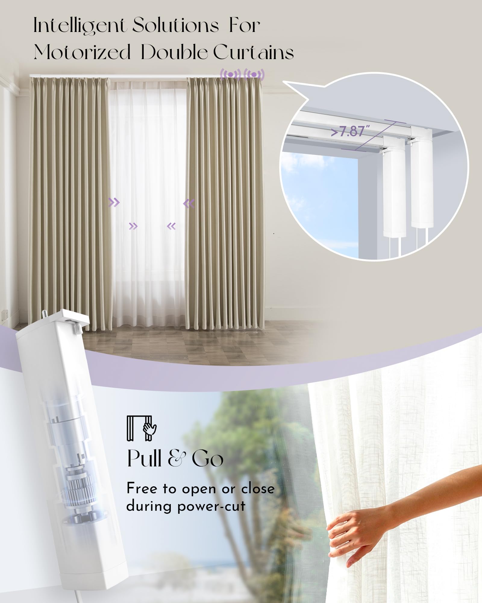 Heavy-Duty and Versatile: Graywind smart curtain system can handle curtains weighing up to 66lb and equipped with overloading protection. Whether you need a single-track or dual-track system, we've got you covered. Check out our installation book for more information.