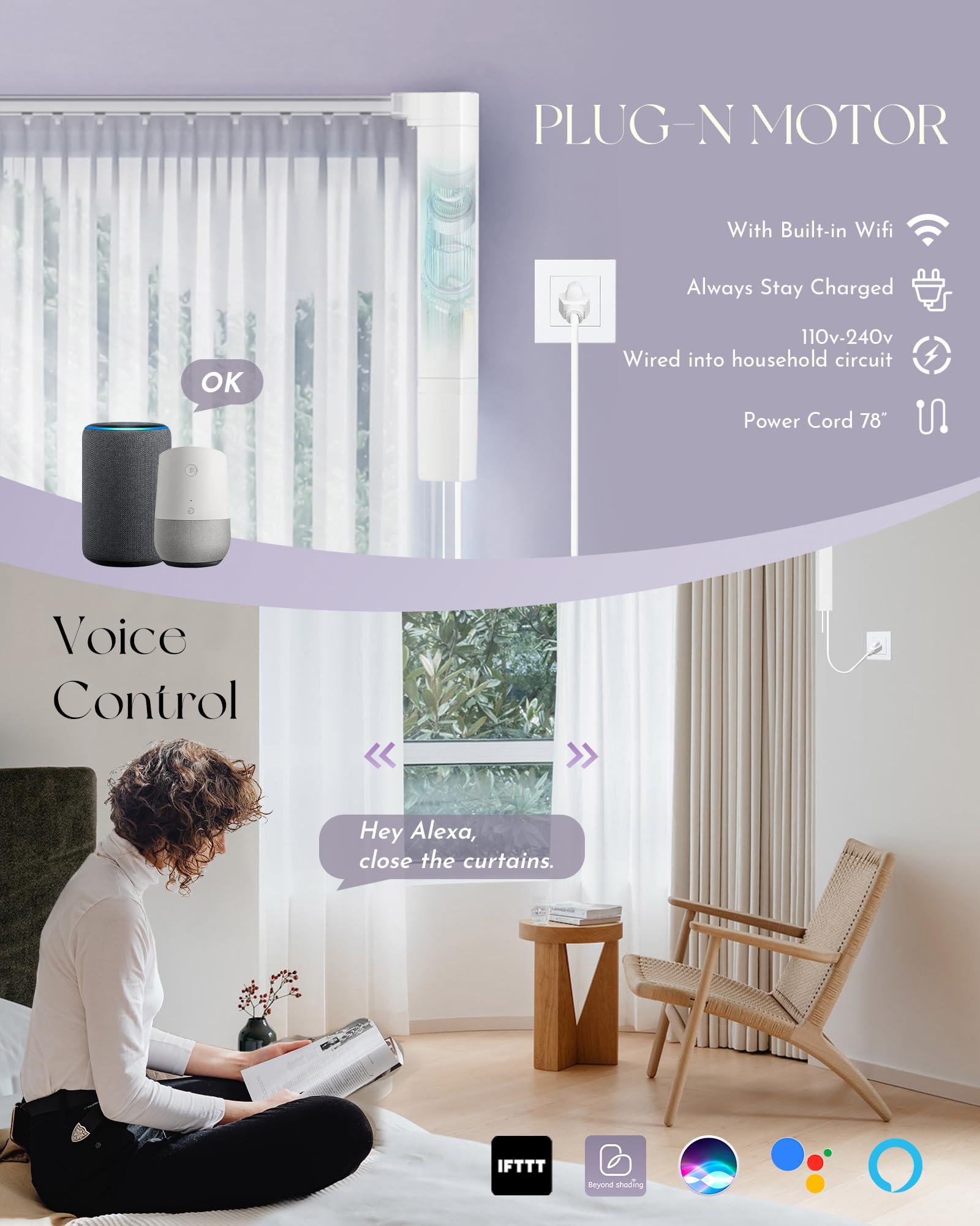 Direct to Alexa/Google : Hardwired Wi-Fi motor, easily achieve App & Voice Control, no hub needed. Flexibly create groups or routines, percentage control your electric drape via Graywind App or voice command, remote control them even you're away from home, really free your hands!