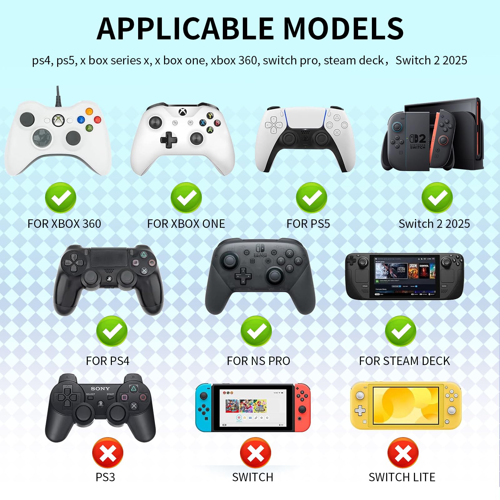 💗【Wide Compatibility】PERFECTSIGHT Cute Thumbsticks Caps are designed for Switch 2, PS5 dualsense, PS4 dualshock, Xbox Series X/S, Xbox One, Switch PRO controllers and other regular sized controllers, don't fit Switch Joy-Con and Swith Lite!!!