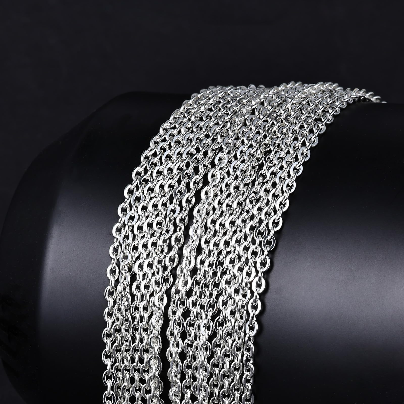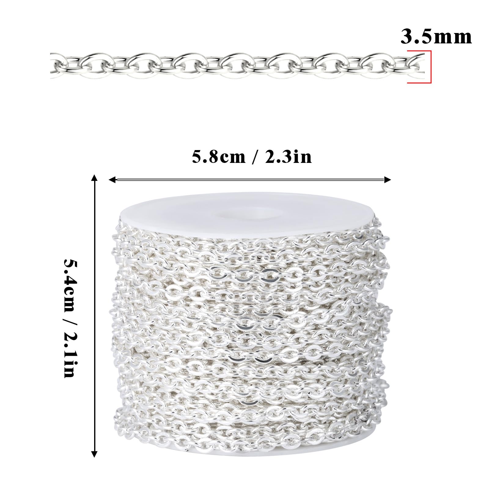 【3.5mm Cable Links Chain】The silver oval cable link chain is 3.5 mm thickness, strong and durable for jewelry making.