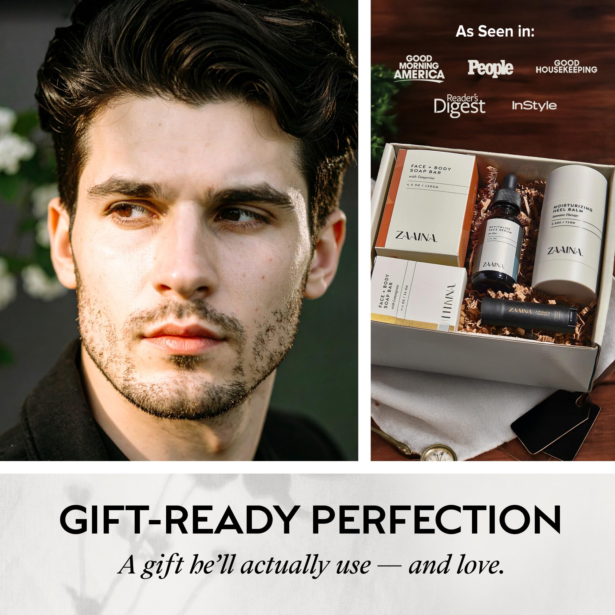 NATURAL & CLEAN INGREDIENTS: The ZAAINA menβs self care gift set is crafted with essential oils, shea butter & botanicals.