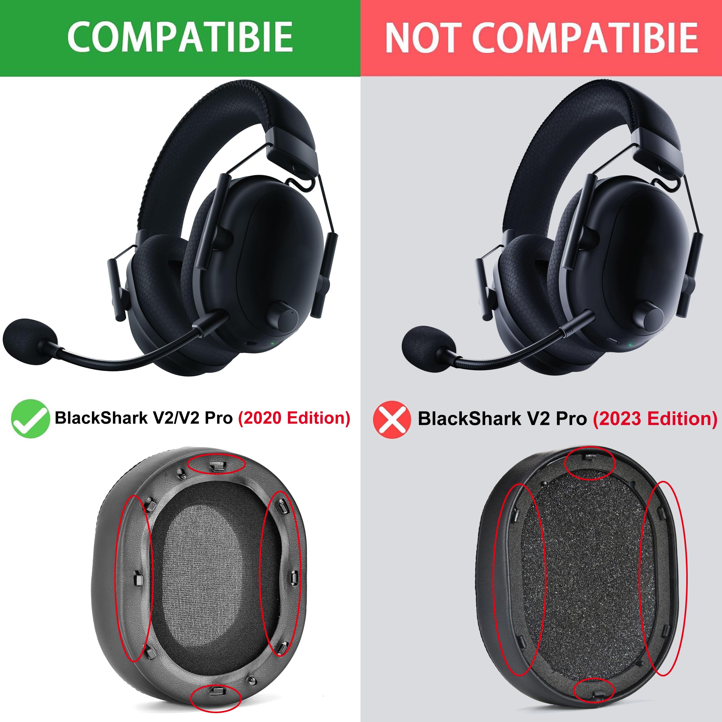 【Compatible with】Razer BlackShark V2 / V2 PRO gaming Headphones(Do Not fit New Blackshark V2 Pro 2023 Edition) Headphones. Please confirm your headset's model before purchase.