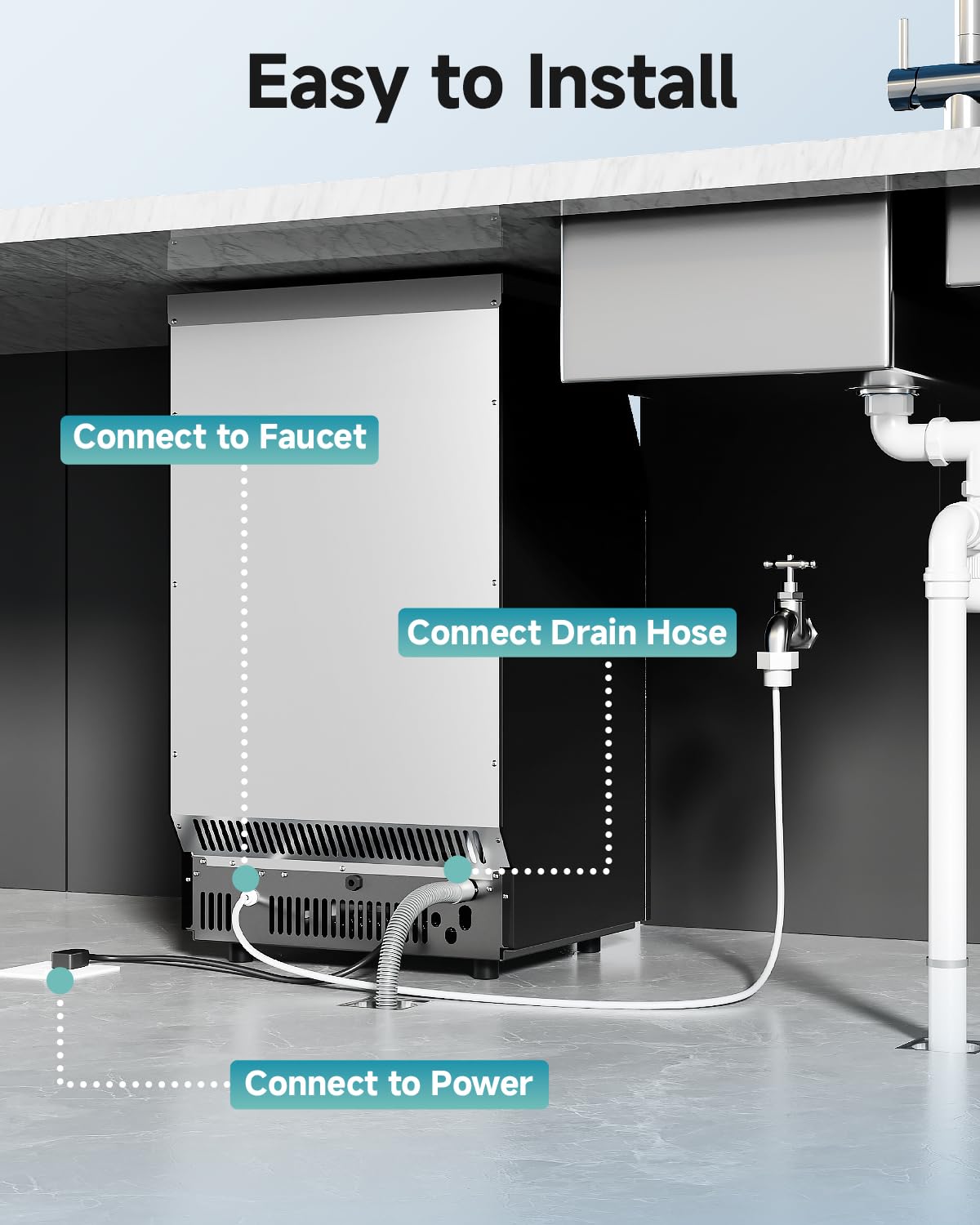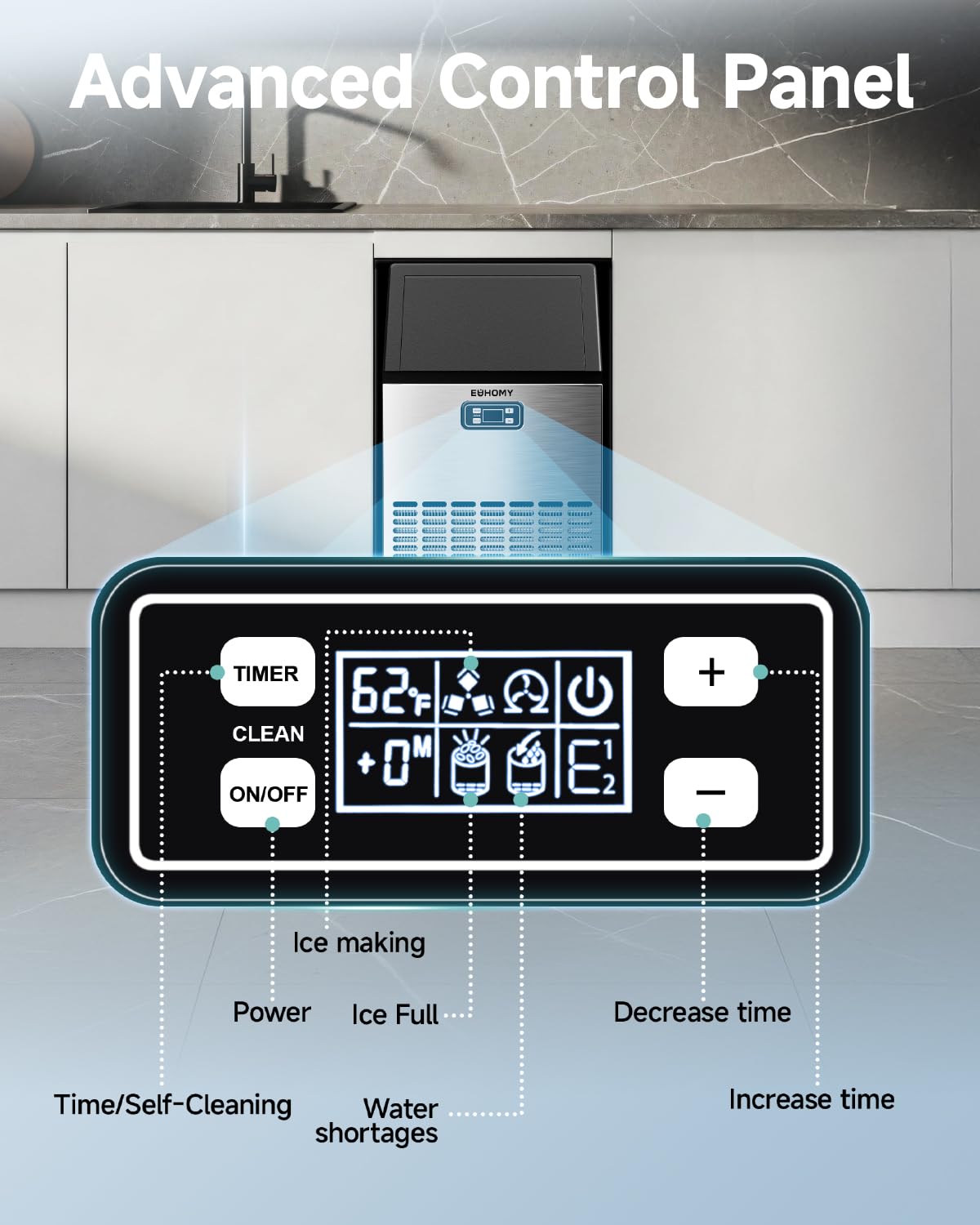 EFFICIENT & QUIET - You can enjoy the experience of this under counter ice maker all the time. The powerful compressor allows the under counter ice machine to complete the ice making process efficiently without causing too much noise. High efficiency and low noise provide you with a comfortable environment to enjoy your high-quality ice. At the same time, Euhomy industrial ice maker has an energy certificate to help you save electricity bills. In the long run, this will good for your wallet.