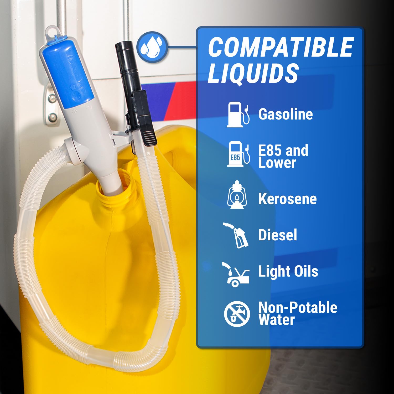 [ COMPATIBLE LIQUIDS ] Transfer Gas, Kerosene, Diesel, e15 to e85, & Non-Potable Water and backed by a 1 Year Manufacturer Warranty | Feel confident utilizing this pump anywhere