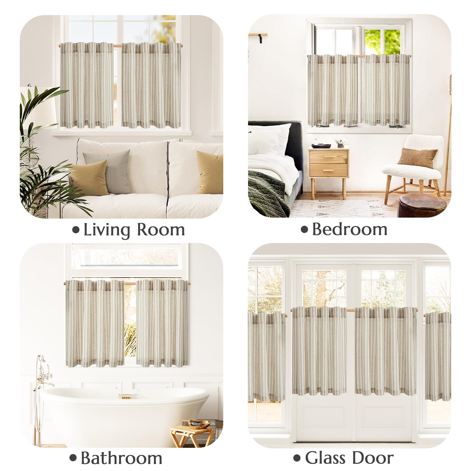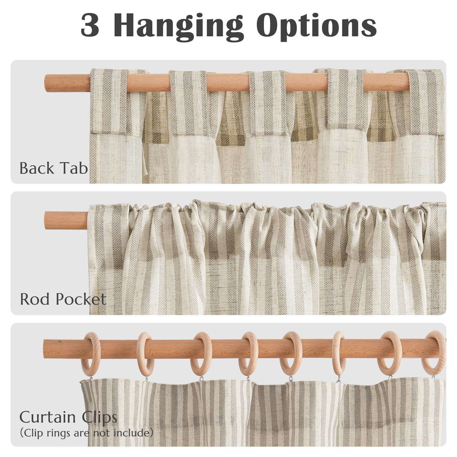 Versatile & Adjustable: These tier curtains pair beautifully with farmhouse, cottagecore, or modern styles. Ideal for glass doors, bedrooms, bay windows, cabinets, or small spaces. Length can be adjusted with three hanging options: rod-pocket, drapery hooks or clips (rod, hooks, and clips not included), adding subtle charm and flexibility