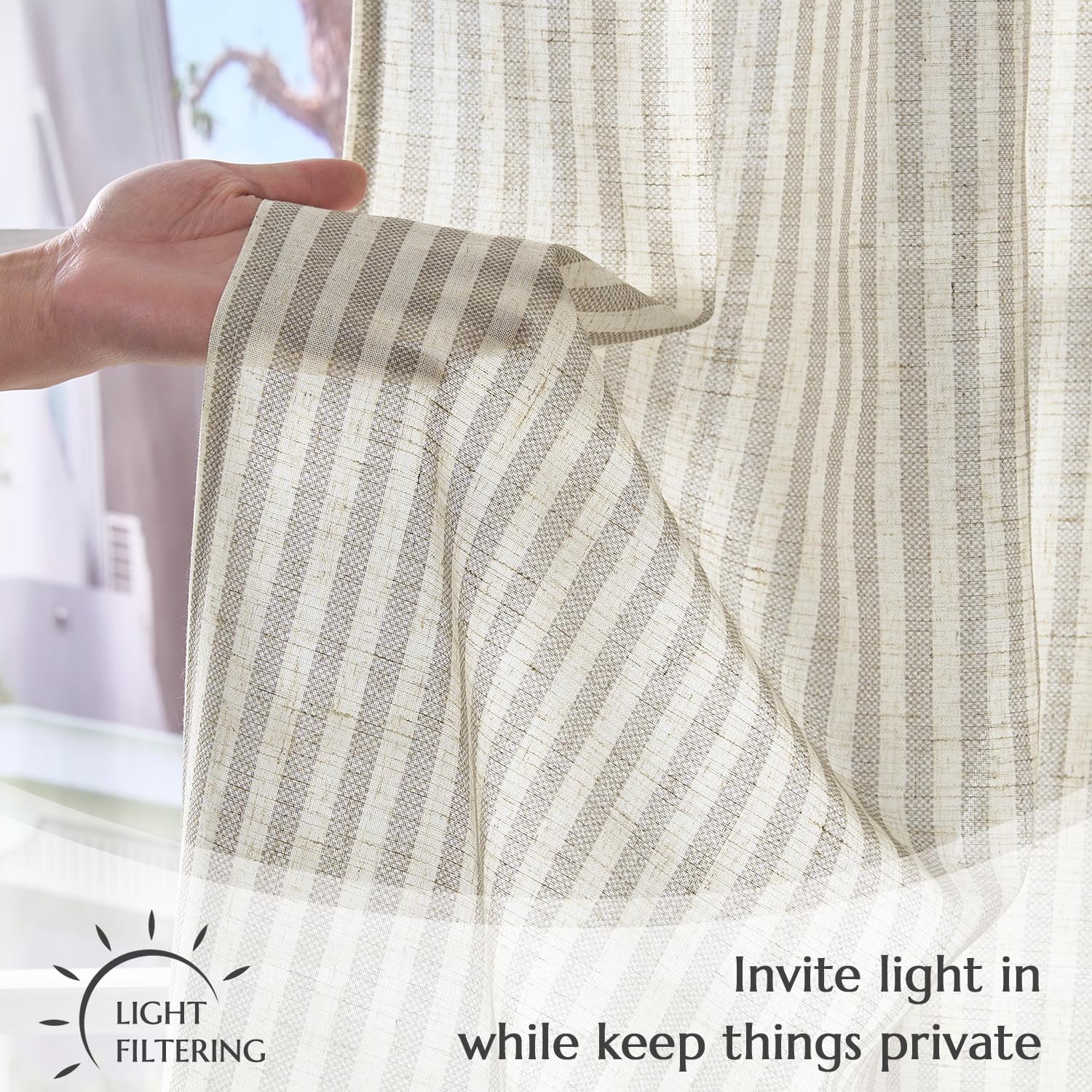 Rustic Striped Design: Evenly spaced vertical stripes give a neat, orderly look while subtly guiding the eye upward. The natural linen texture and gentle drape add understated charm, creating a clean and cozy feel for your space