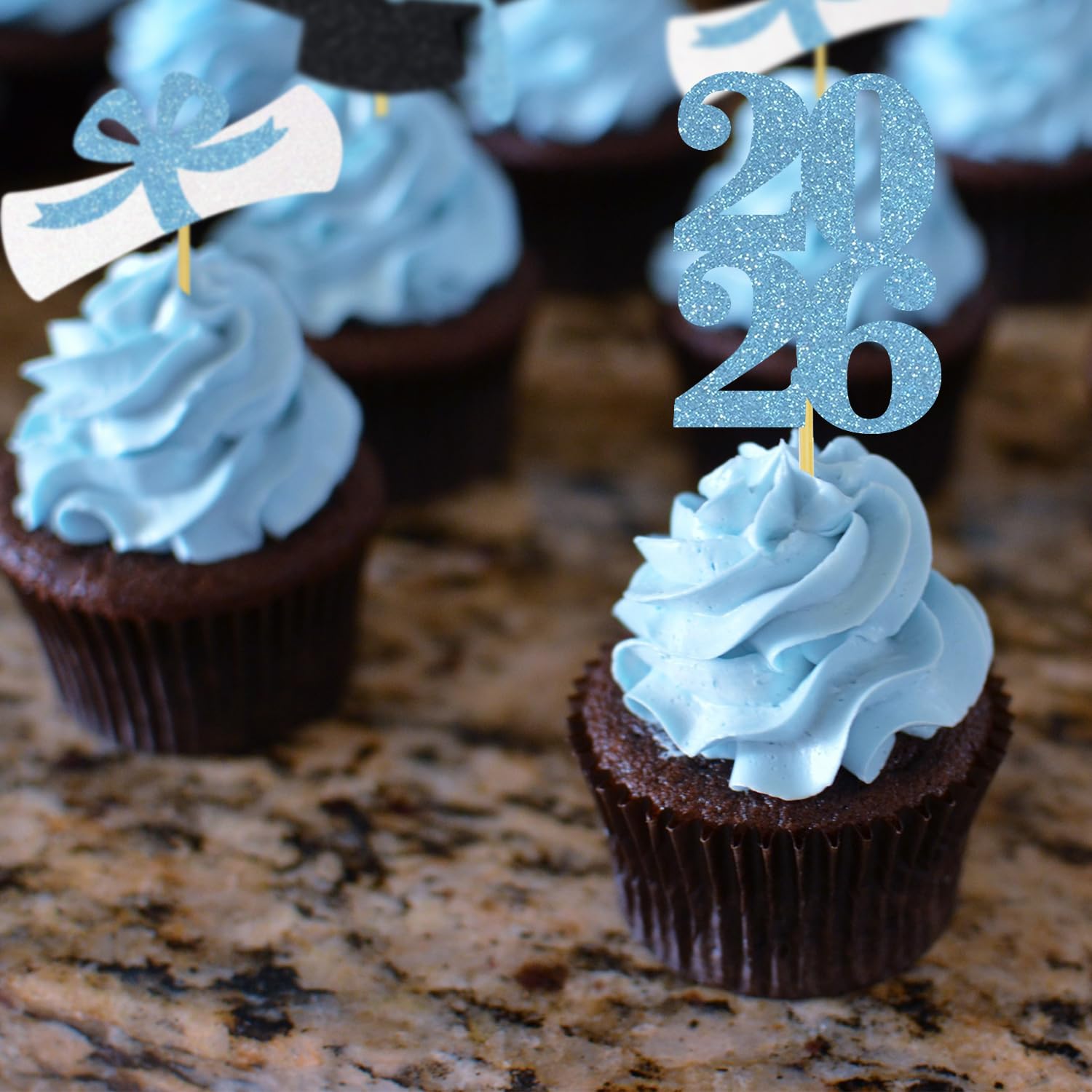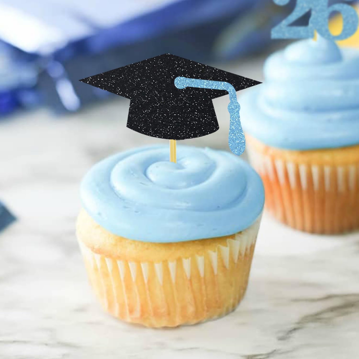 The class of 2026 cupcake toppers are made of glitter paper, fully assembled and ready to use, you don’t worry about falling glitters everywhere! Decorate your cupcakes with these glitter toppers