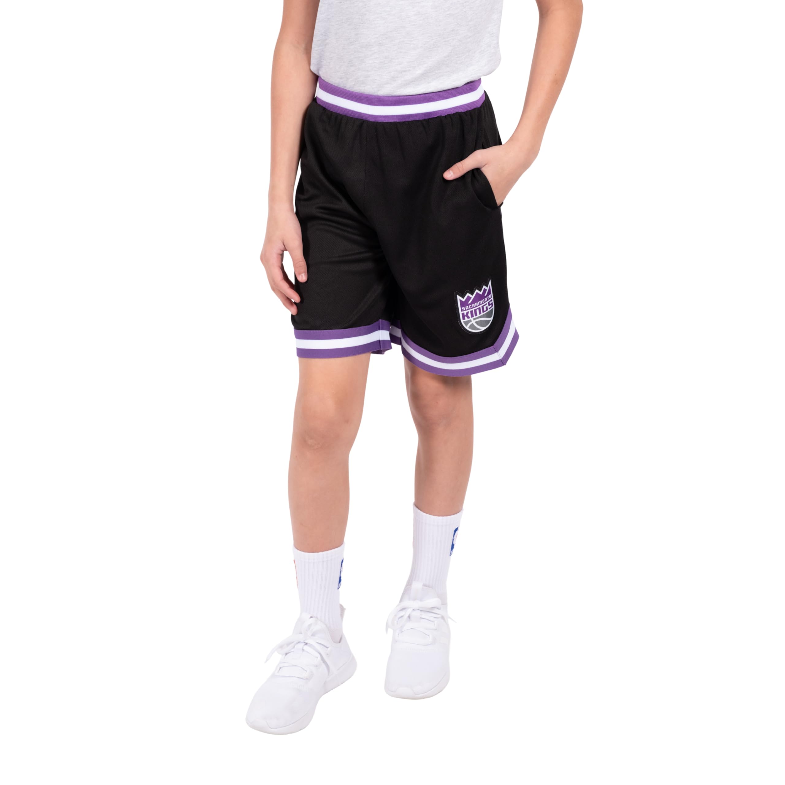 FUNCTIONAL AND STYLISH DESIGN: a black body create bold color contrasts with NBA team logos. Useful additions include two side pockets and a loose fit for unrestricted movement.
