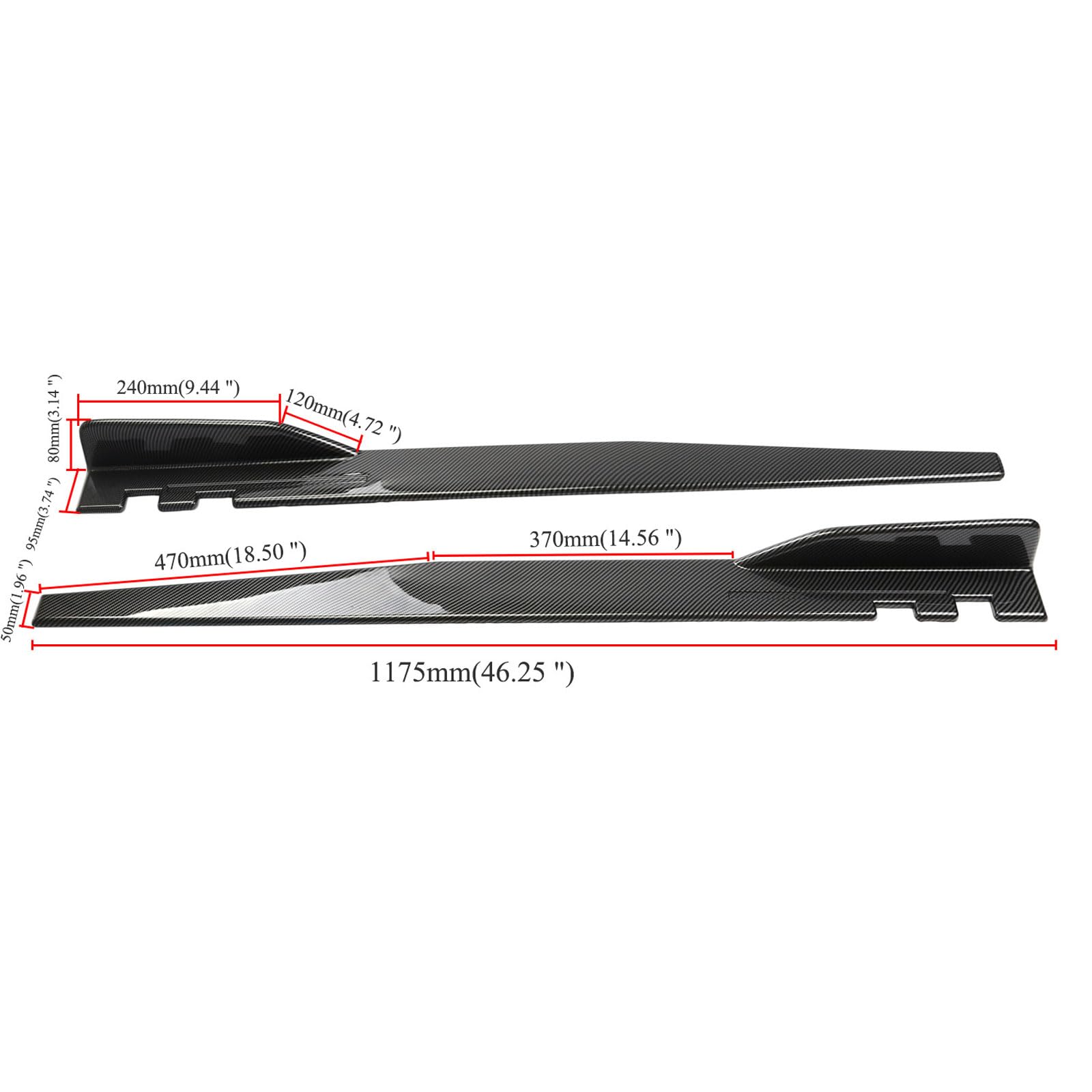 【Specification】 - Item Type: Car Side Skirt - Material: Polypropylene - PP. - Color:Glossy Black/Carbon Fiber Look. 【Feature】 Enhance your vehicle's performance and aesthetics with these car side skirts. these side skirts are designed for long-term use, providing both improved aerodynamic efficiency and a stylish appearance. The package includes two side skirts and all necessary mounting accessories, ensuring a seamless installation process. With a professional design that guarantees stability and reliability, these glossy black side skirts will fit most vehicles with appropriate dimensions, adding a sleek and sporty touch to your car 【Warm Tips】 When purchasing please carefully check the year and model of your car.Please allow error due to manual measurement.Due to the difference between different monitors, the picture may not reflect the actual color of the item.